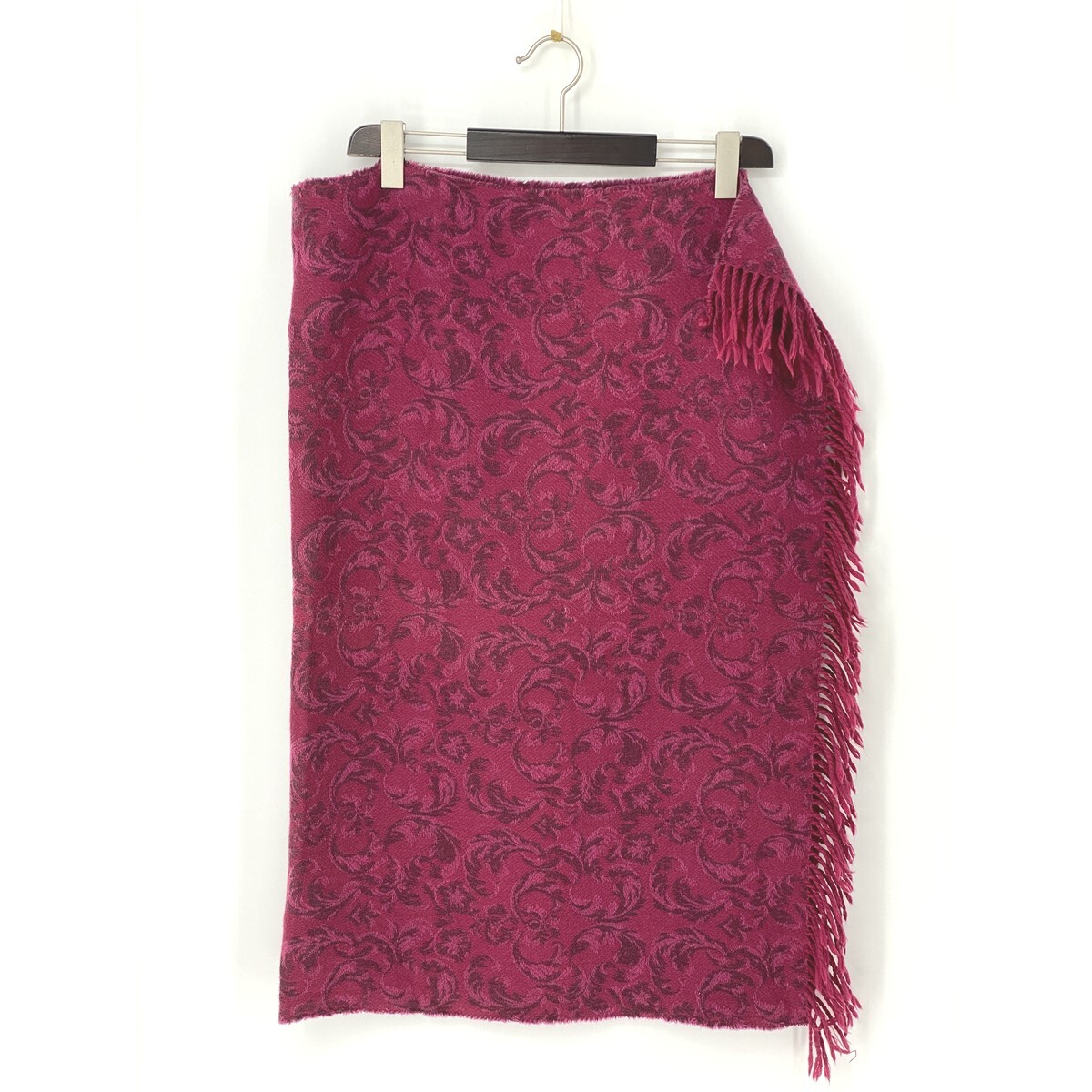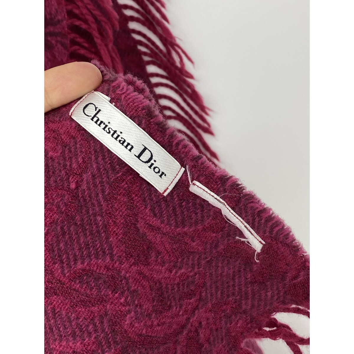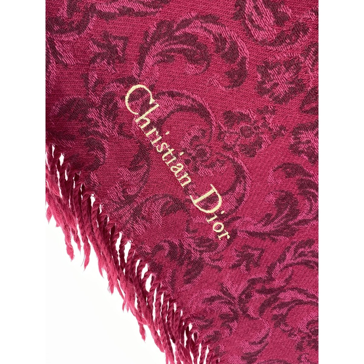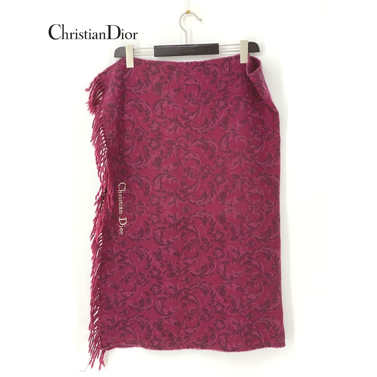 A9995/ビンテージ 美品 Christian Dior クリスチャンディオール ボタニカル柄 総柄 フリンジ デカロゴ刺繍 大判 ストール ブランケット 赤