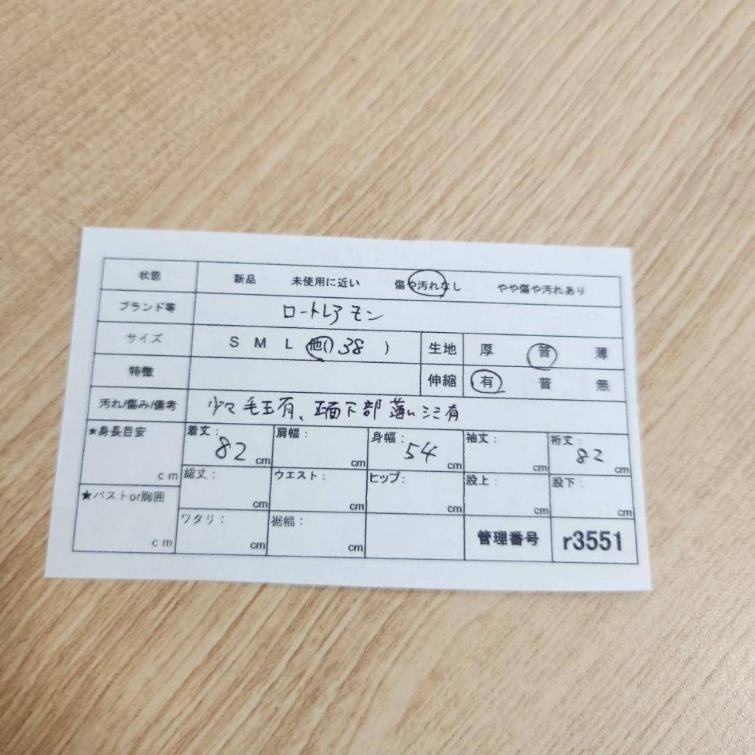 少し毛玉がありますが、全体的にきれいな状態です。裾にごくわずかな糸ほつれあり。