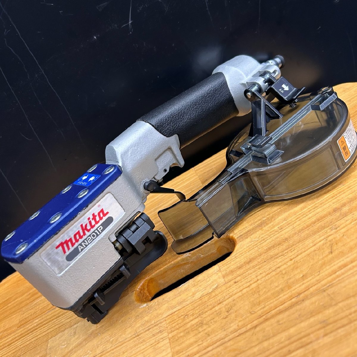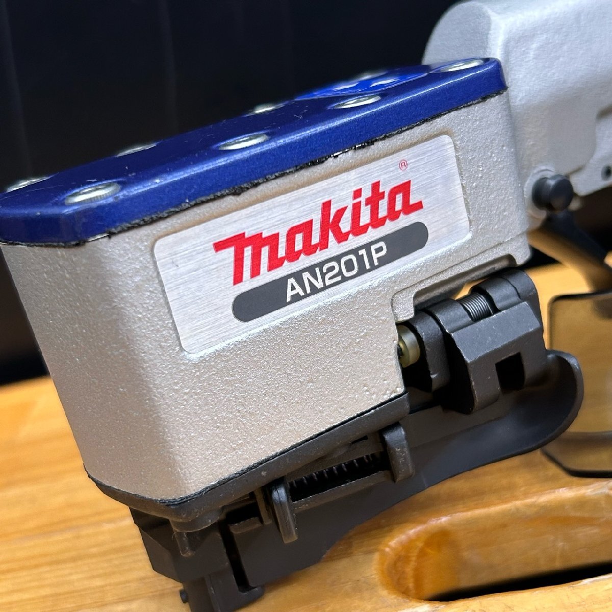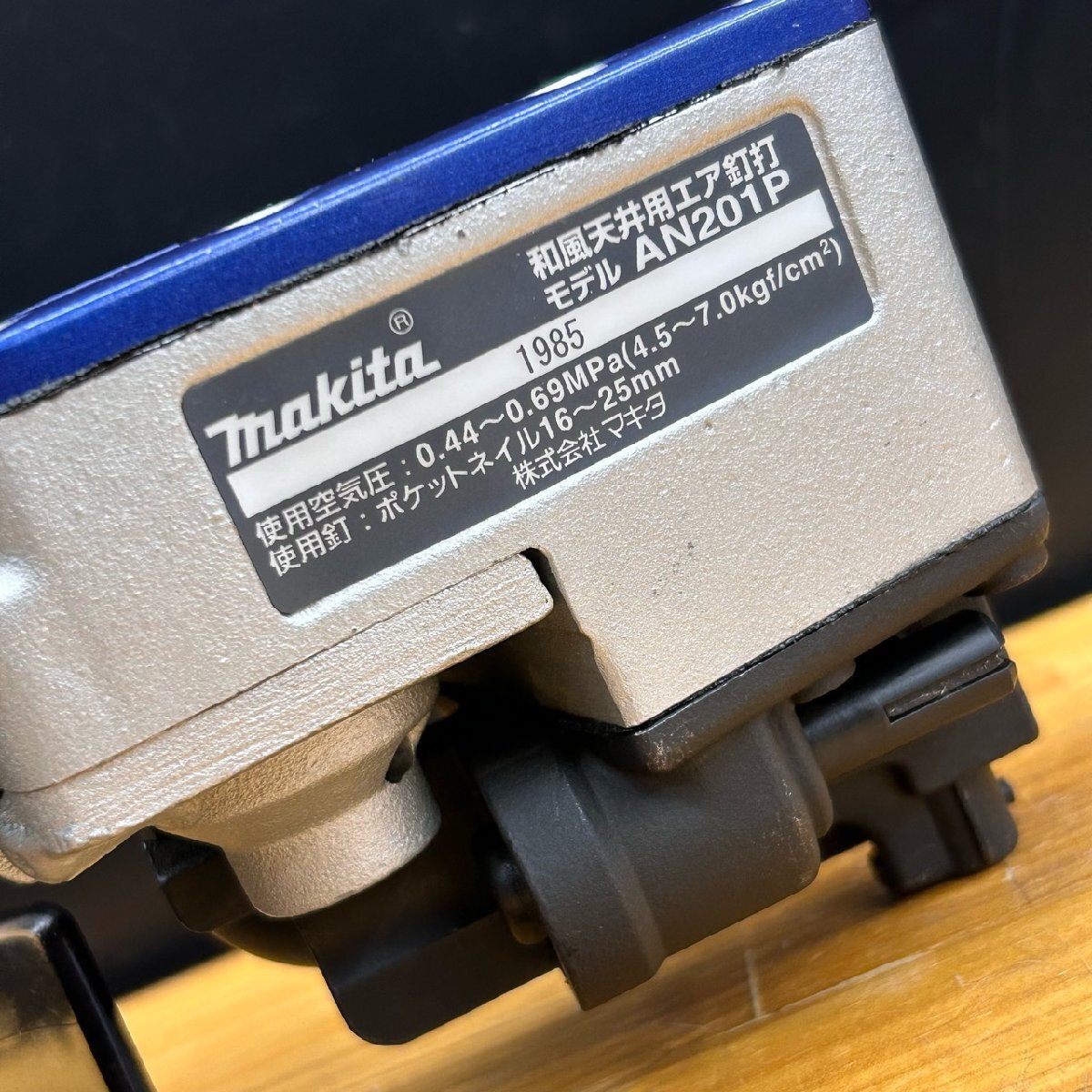 【中古買取/美品】マキタ 常圧 和風天井用エア釘打/AN201P『用途:内装/木造板金』『和風天井をラクにこなす極薄設計/ヘッド部高さ88mm』