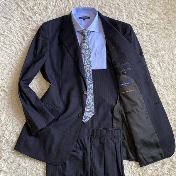 ☆大きいサイズ★イタリア高級生地CANONICO ×UOMO★SUPER110‘S★XL〜XXL位 ダークネイビー セットアップ メンズ スーツ カノニコ 背抜き