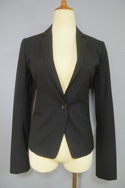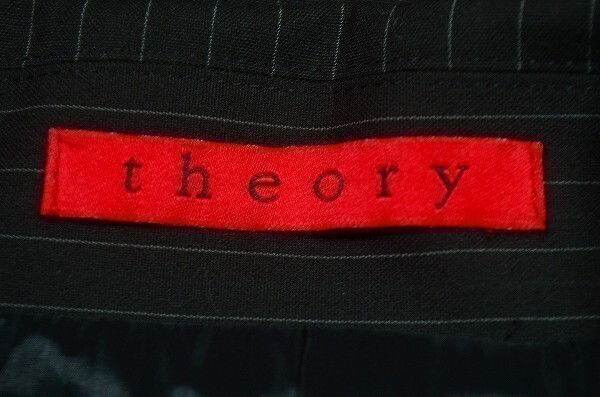 A1372/極美品 秋冬 THEORY セオリー レーヨン ストライプ シングル1B テーラードジャケット 2 163 黒/日本製 レディース スーツ ビジネス