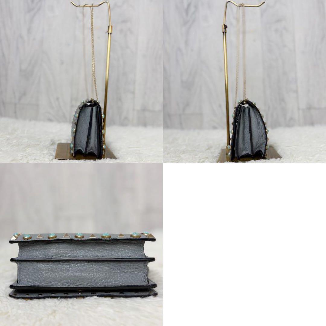 VALENTINOのブランドロゴ ロックスタッズ ターコイズ レザー チェーン ショルダーバッグです。