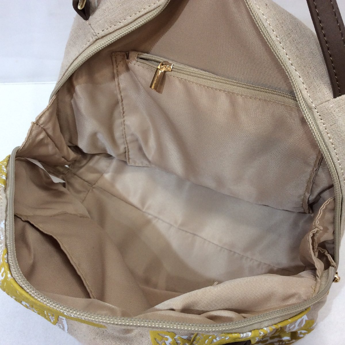 【カラー】ベージュ×ホワイト&グリーン系