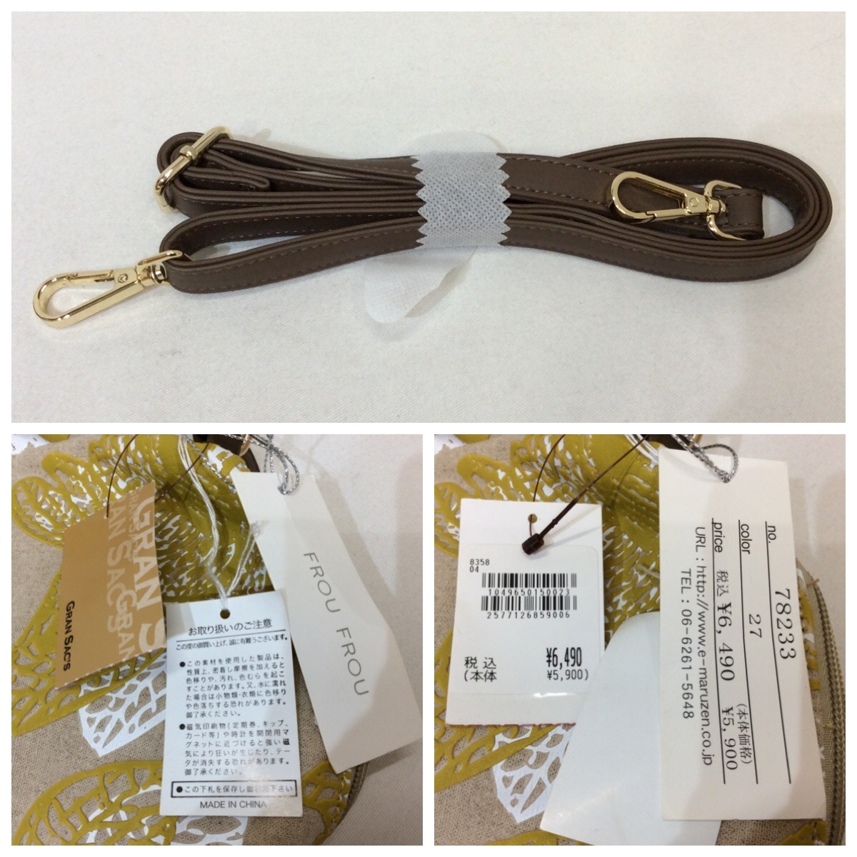 【備考】定価6,490円税込・ファスナー開閉式・ショルダー付き(取り外し可)・内側ポケット3
