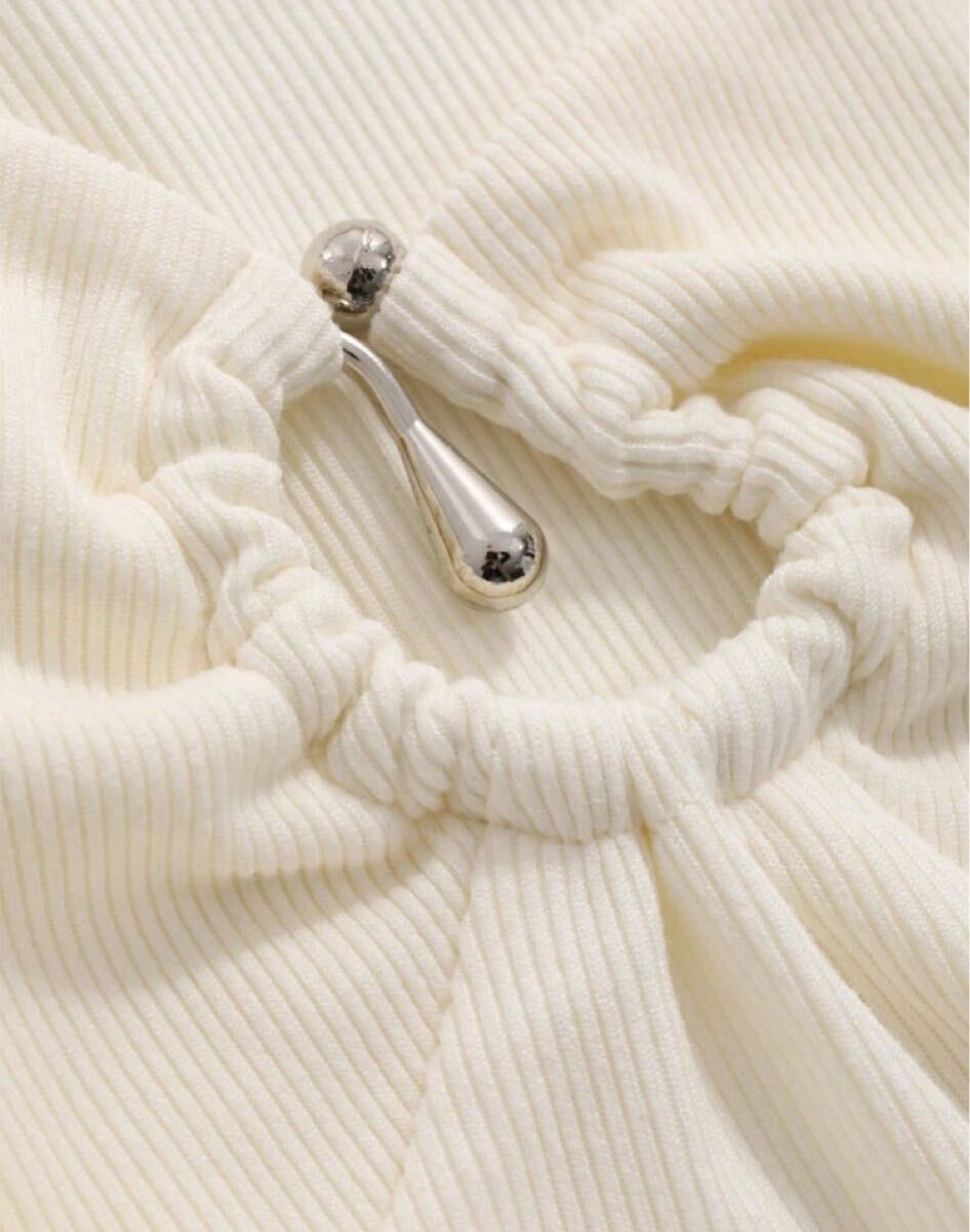 DAZY レディース リブ編みクロップドトップ アウトにぴったり半袖 tシャツ レディース
