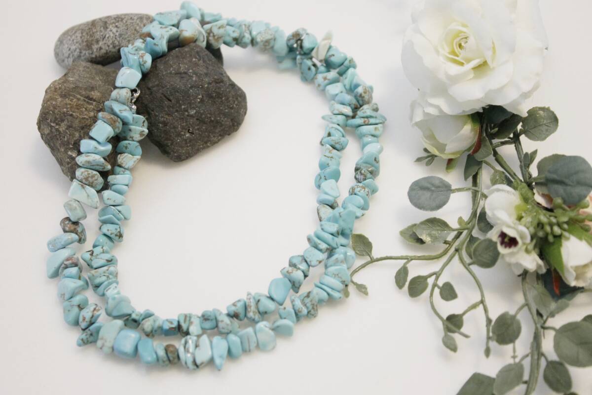 【パワーストーン・ヒーリングストーン】ターコイズ さざれ 天然石 ビーズ ネックレスを制作致しましたので出品致します。 余りの天然石で作成しましたので、格安で出品いたします。 長さ約60cm程度。 ハワイアンな服装、ダンス衣装などに如何でしょうか? 送料はこちらで負担致します。 ゆうパケットポストminiでの発送となります。 個人出品の為、神経質な方はご遠慮頂けます様お願い申し上げます。 ご理解頂ける方のお取引をお願い致します。 ※ネックレスのみの出品です。撮影用の小物は付属しません。ご注意ください。 |