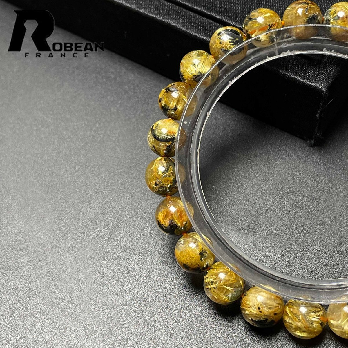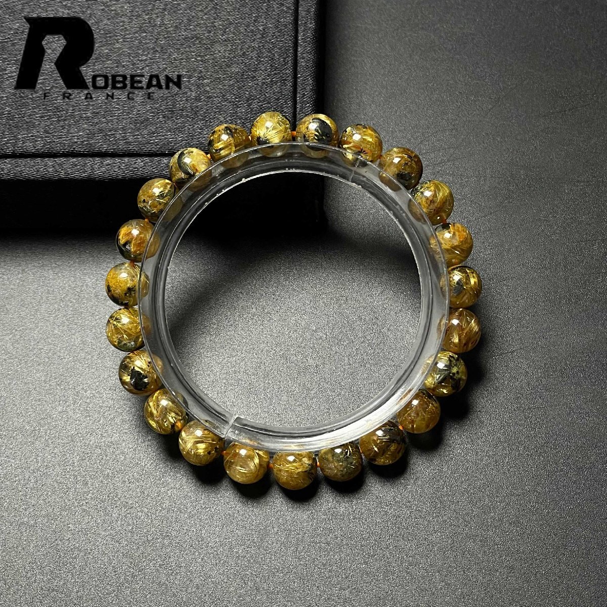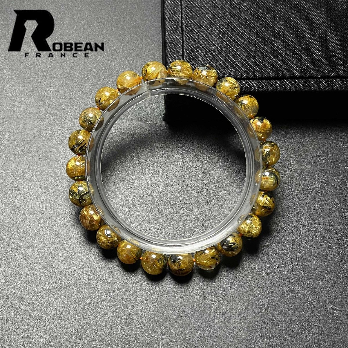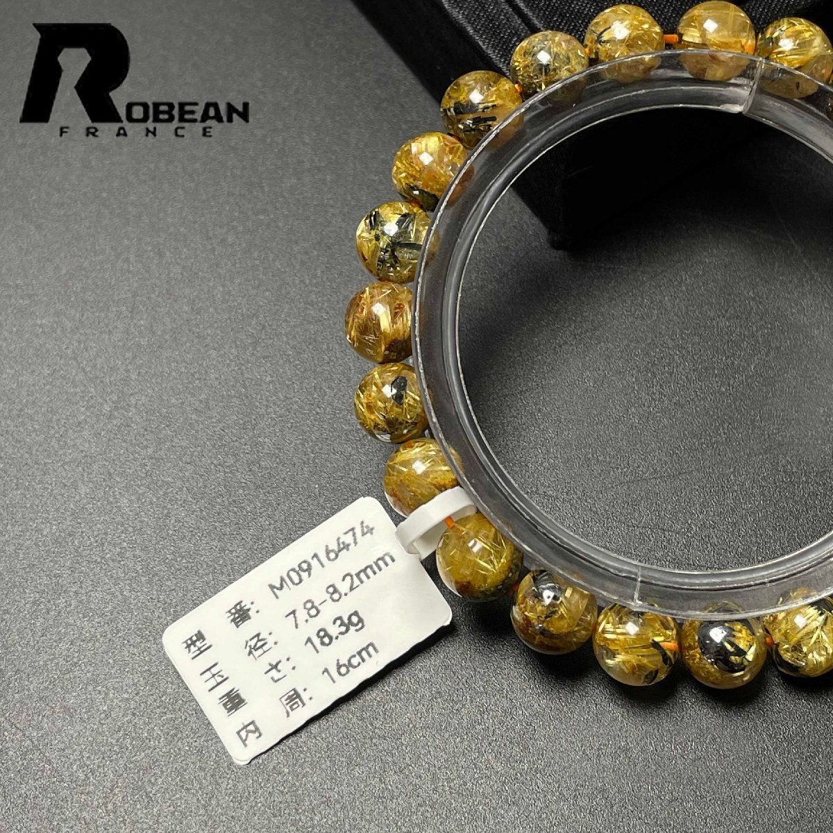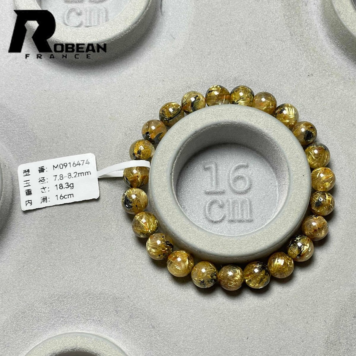 貴重 EU製 定価9万円★ROBEAN・太陽花タイチンルチル★黄金針水晶 金運 開運 ゴールド ブレスレット パワーストーン 7.8-8.2mm M0916474