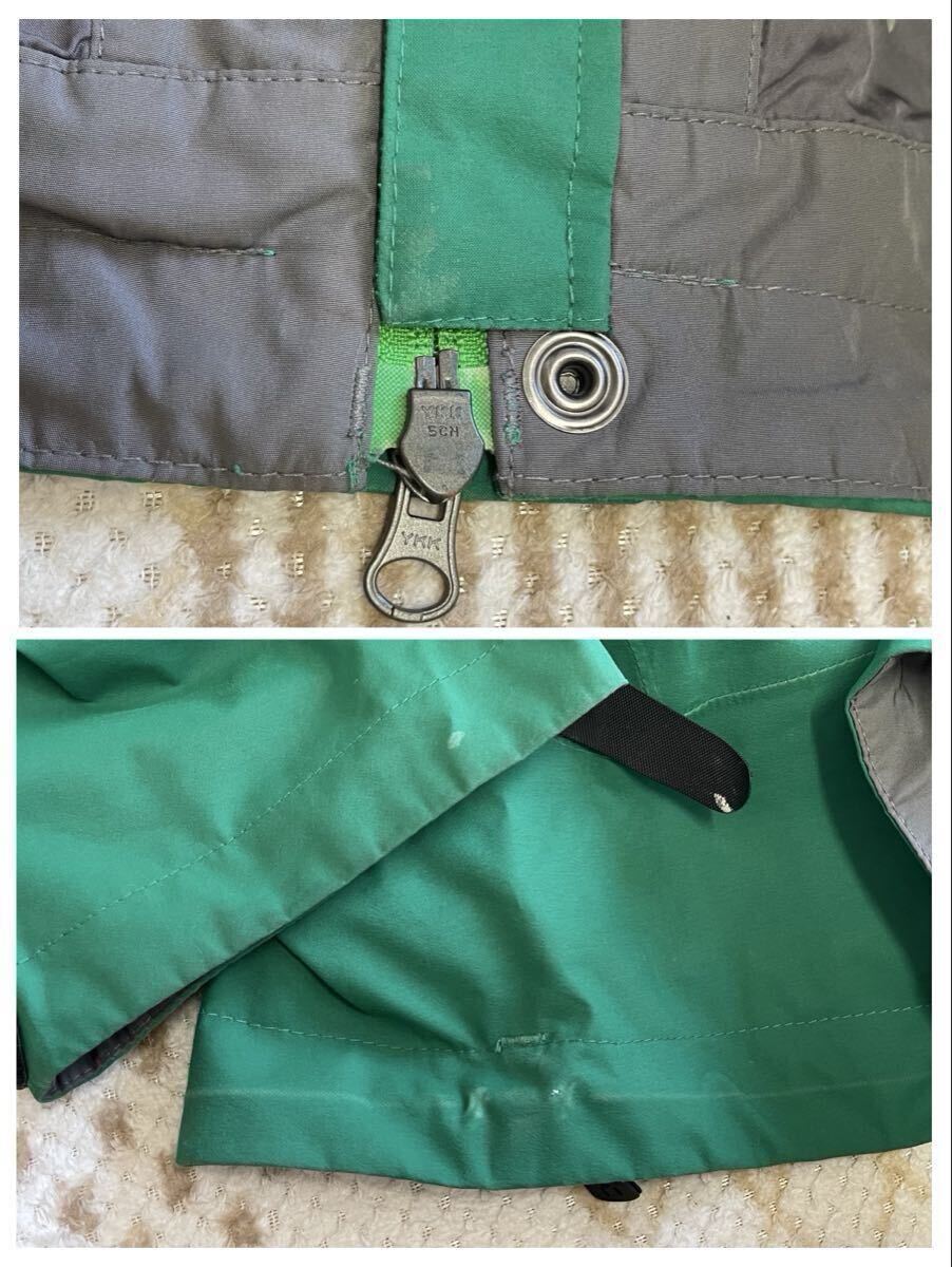 注意事項 : 袖口の調整ストラップのベルクロの一部が、接着剤が剥がれたように二層に分かれています。留めることは可能ですが、接着・補修が必要になる場合があります。