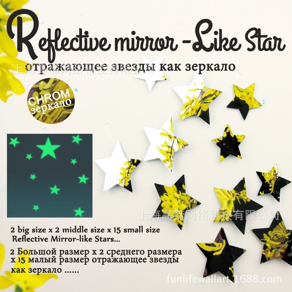 光る!ミラーステッカー 【星アソート/鏡面シルバー】 夜光 蓄光 壁紙シール リビング 寝室 子供部屋 ウォールデコ 模様替え