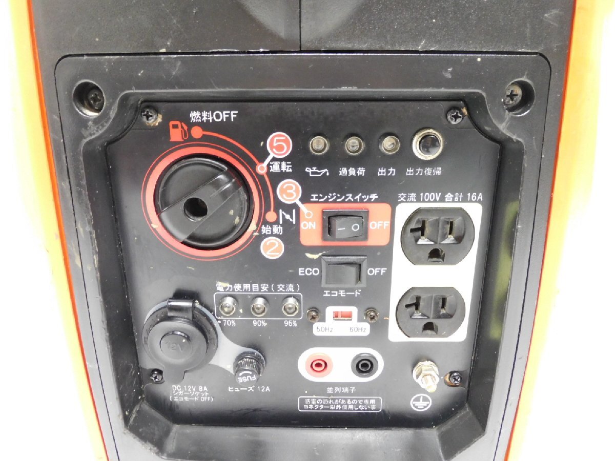 メーカー:KOSHIN 商品名:インバーター発電機 型式:GV-16i 周波数:50/60Hz 定格出力:1.6kVA 電圧:100V ●ガソリンエンジン 始動方式:リコイルスタータ式 燃料:ガソリン 燃料タンク容量:3.9L ●寸法・質量 全長×全幅×全高:498×293×467mm 乾燥質量:22kg 【整備箇所】 エンジンオイル交換 キャブレター 【点検箇所】 燃料タンク エアークリーナー フィルター 燃料ホース その他調整 清掃 レジャー、防災用電源など多用途に使える ガソリン発電機 動作確認済みです。 |