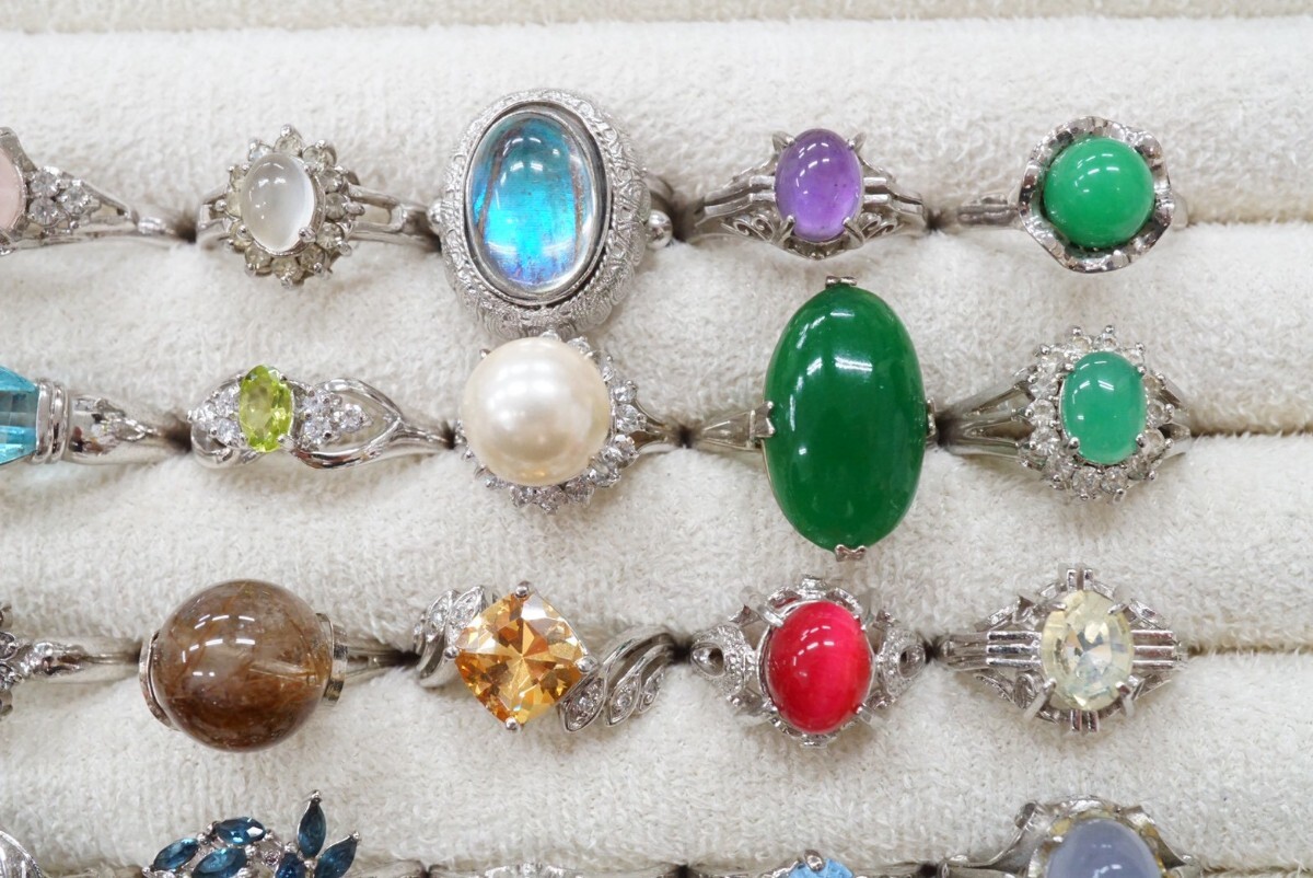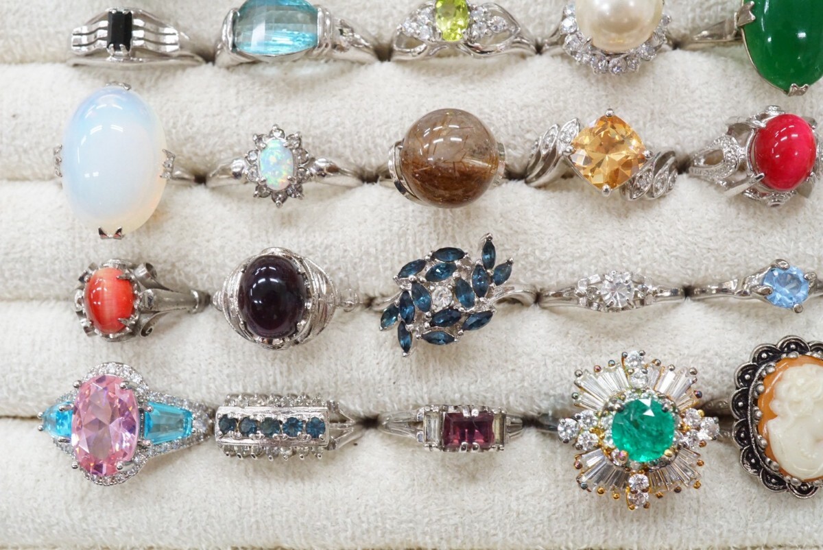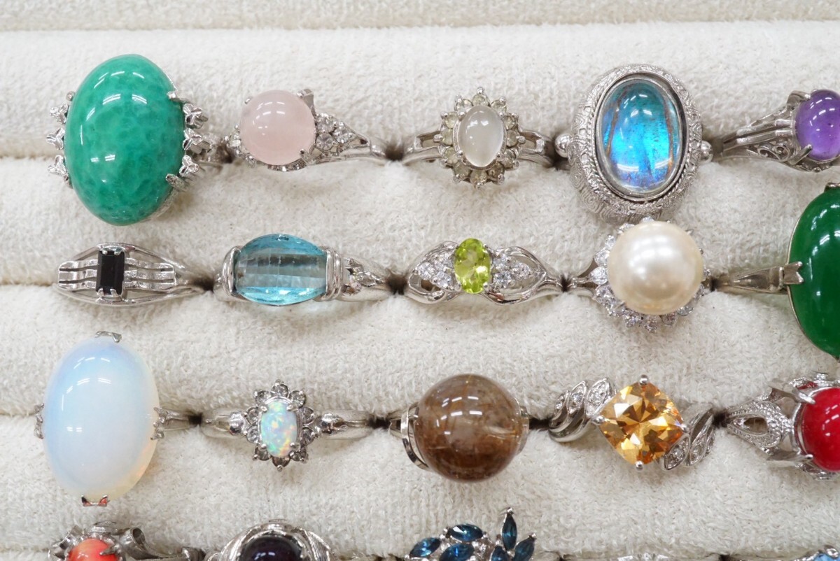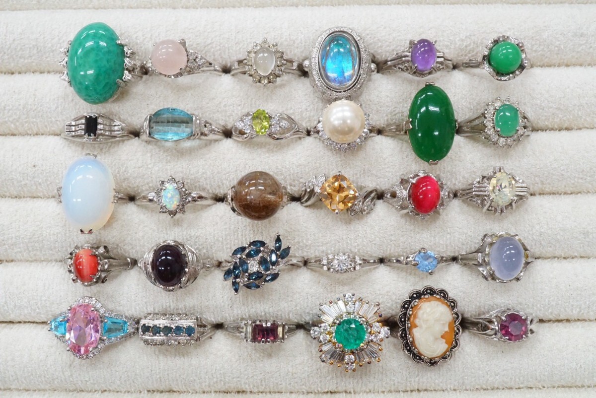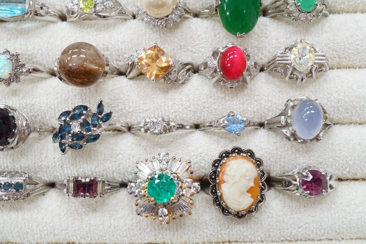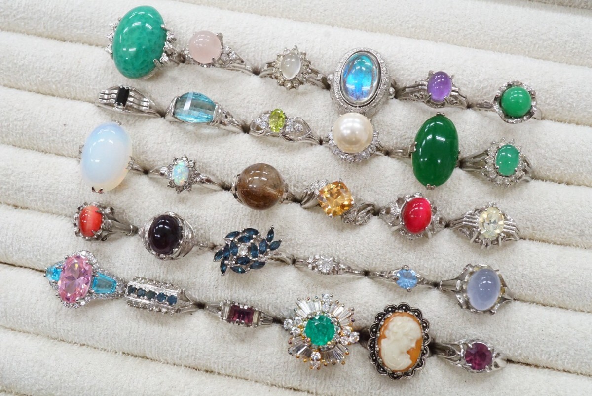 C384 天然石 色ガラスなど リング 指輪 30点 ヴィンテージ アクセサリー 大量 セット まとめて おまとめ まとめ売り 装飾品