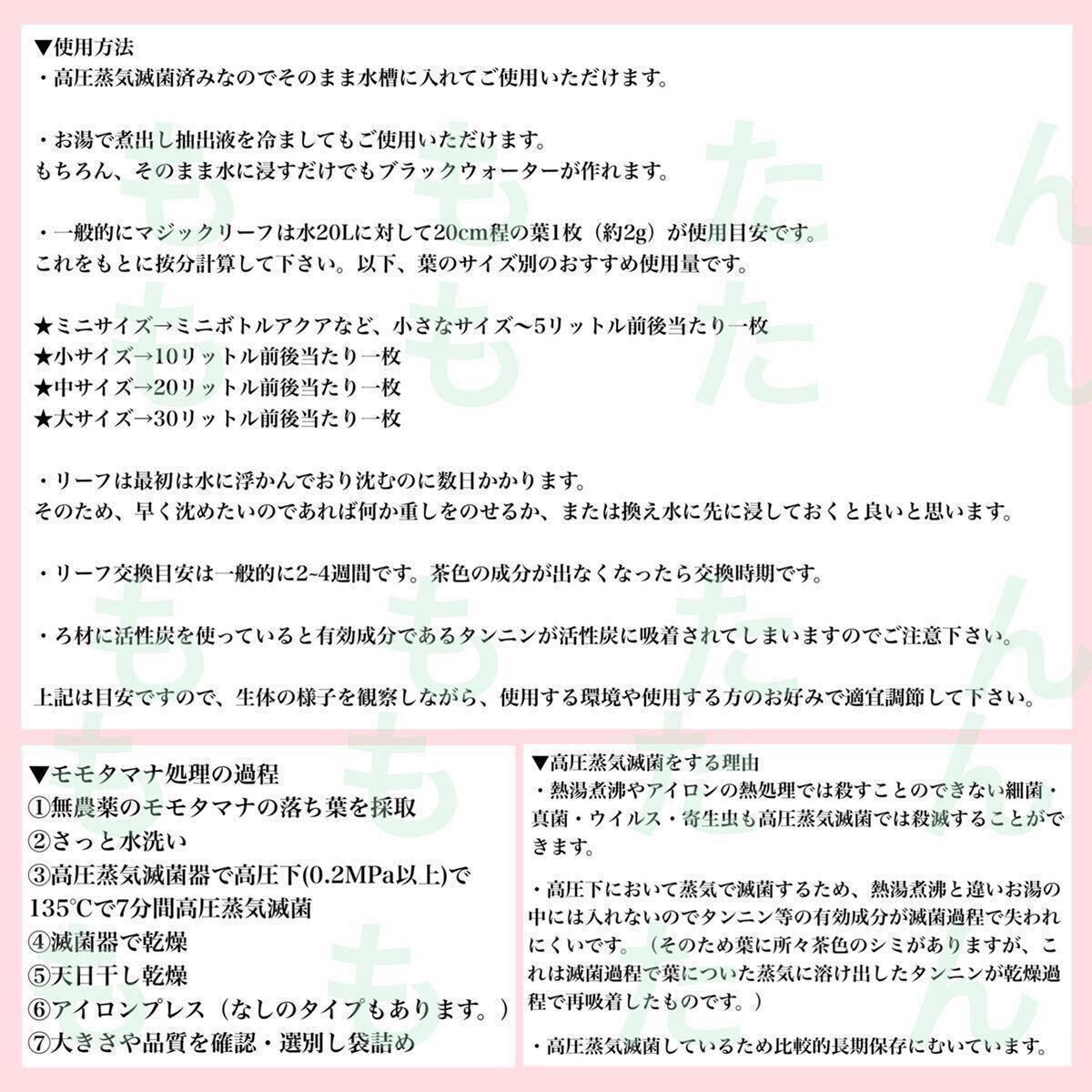 ※調べた限りでは国内で高圧蒸気滅菌済みのモモタマナ(マジックリーフ)を生産・販売しているのは、当方だけです。