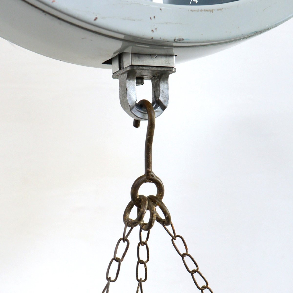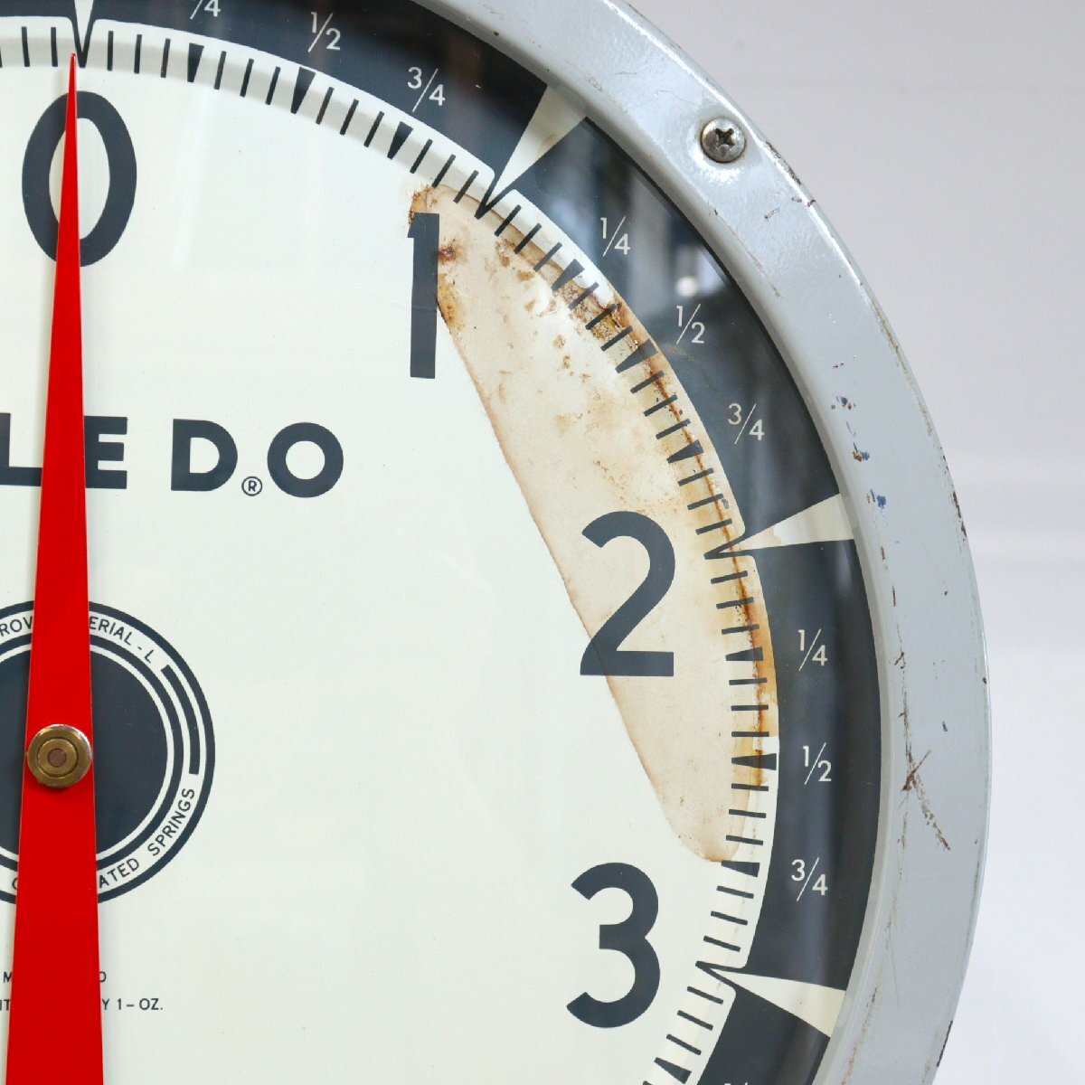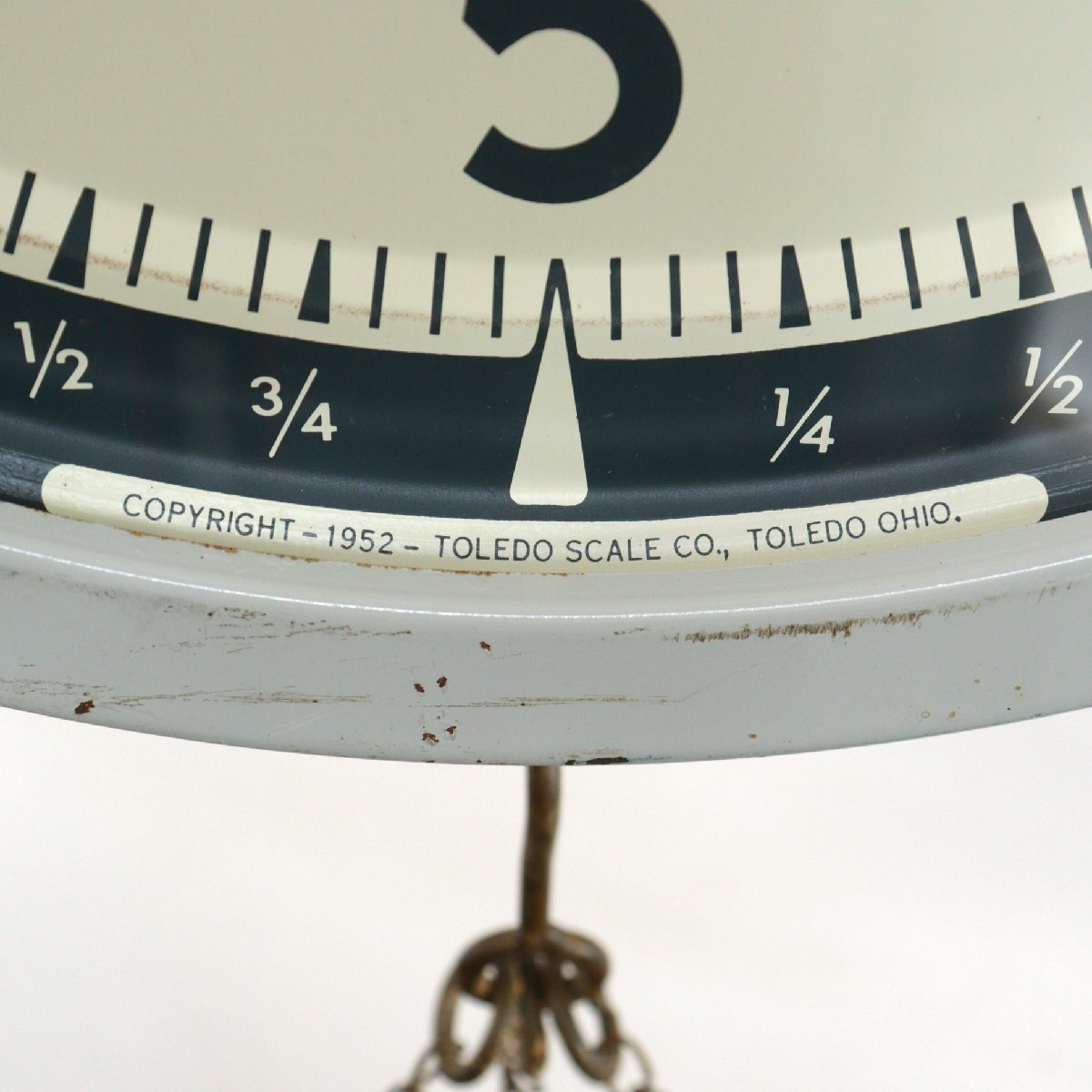 商品説明 explanation | 1952年代の「TOLEDO」社のハンギングスケールです。(MODEL 2110) バスケット付きで30ポンド(約13.61Kg)まではかることができます。 重厚な作りになっていて、両面に金属製の文字盤がついています。 店舗などのディスプレイにいかがでしょうか。 |
