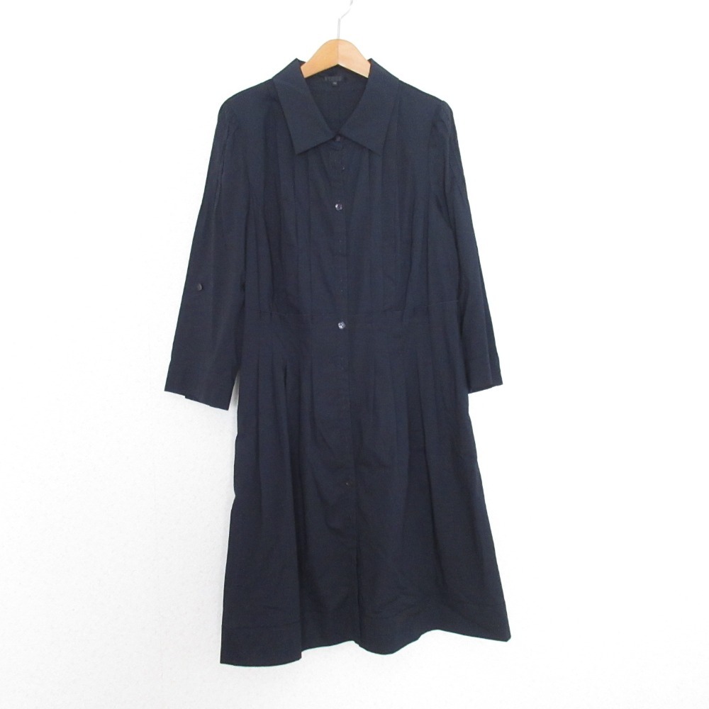 商品名:TO BE CHIC トゥービーシック ストレッチ 長袖 ひざ丈 タック フレア シャツワンピース 44 ネイビー