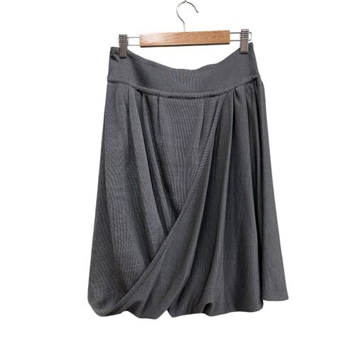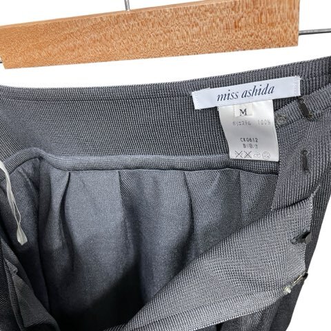 ミス アシダ miss ashida スカートスーツ セットアップ ドレープ バルーン ひざ丈 イージーウェスト サイドフック グレー系 Mサイズ レディース