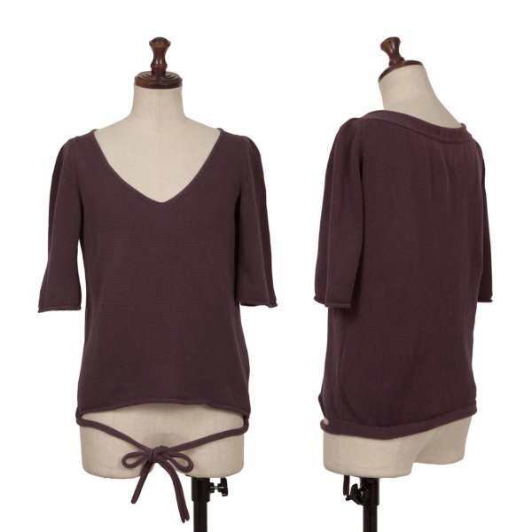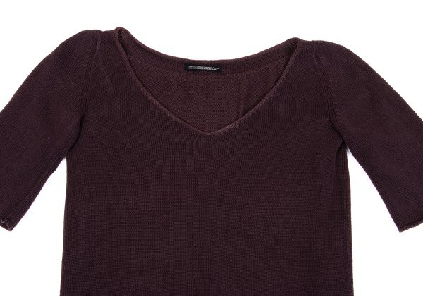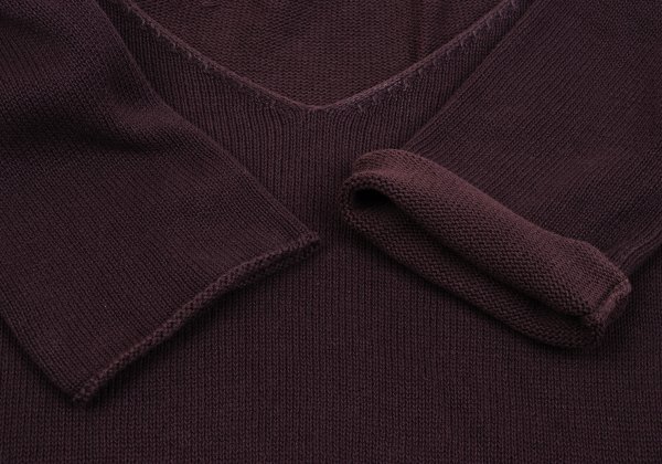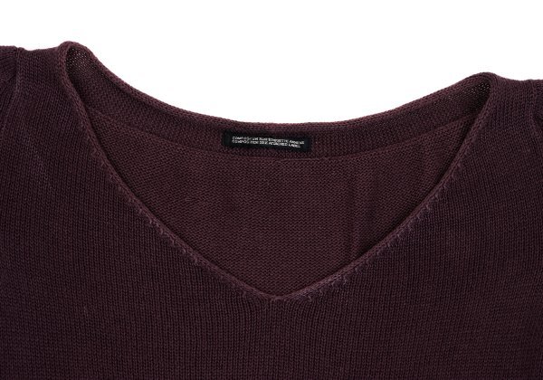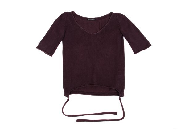 ヨウジヤマモト ノアールYohji Yamamoto NOIR コットンストリングヘムVネックニット ワイン3 |