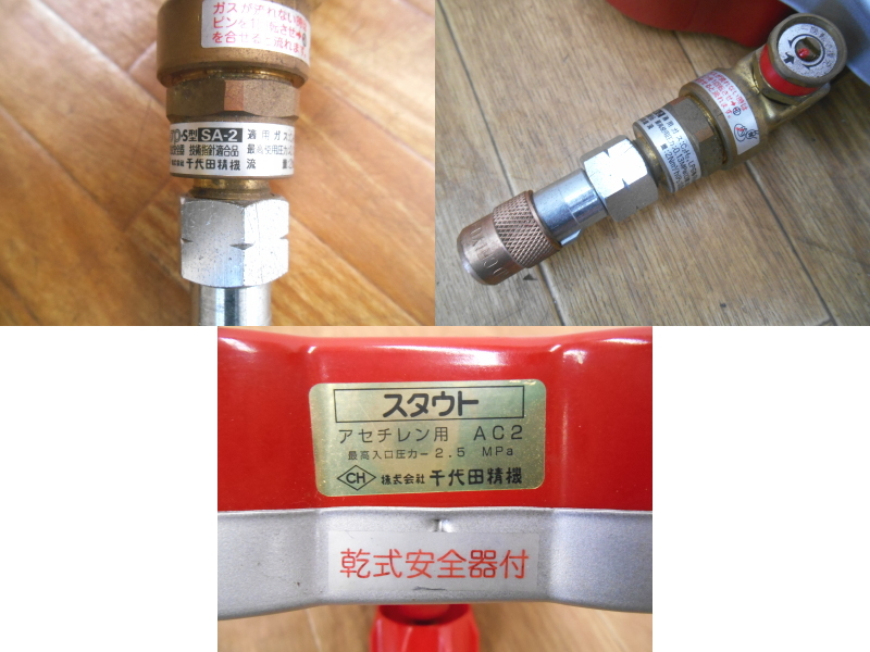 仕様 ●メーカー 千代田精機 ●型式 SO-30 / SA-2 ●外形寸法 W210×D95×H170mm(酸素用) ●外形寸法 W175×D95×H155mm(アセチレン用) ■千代田精機製、酸素・アセチレン用圧力調整器を激安価格にて提供いたしますので、この機会に是非よろしくお願いいたします。 ■消耗部品、消耗品に関してはノークレーム、ノーリターンでよろしくお願いいたします。 ■当方専門業者ではありませんので、細かな動作まではわかりかねますので、細かな点でのクレーム等はお受けいたしかねますので、御了承下さい。 ■当方本商品に対して専門知識がありませんので、専門知識を要する質問、動作にはお答えいたしかねますので、ご了承の上宜しくお願いいたします。 ■簡単な清掃も行っていますのでご検討宜しくお願い致します。 ■新品ではありませんので使用感や多少のキズ等あります。ご理解のうえ入札ください。コンディションに強いこだわりのある方はトラブルの原因となりますので、入札はお控え下さい。 ■TOP画像にあるものが全てです。※大きな商品や重い商品は、台車等に乗っていることや動作確認時に、当方所有の備品を使用して確認しますが、そちらは商品には含みませんのでご理解の程、お願い致します。 ■その他ご質問はお気軽にどうぞ。 | ||