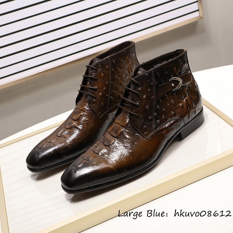 定価13万*入手困難 鰐柄 本革 レザーブーツ メンズ 職人手作り マーティンブーツ 高級牛革 皮靴 ショートブーツ ビジネス ブラウン 28.0cm