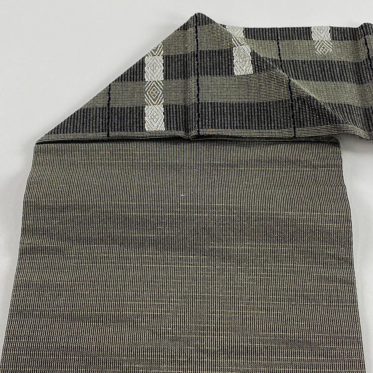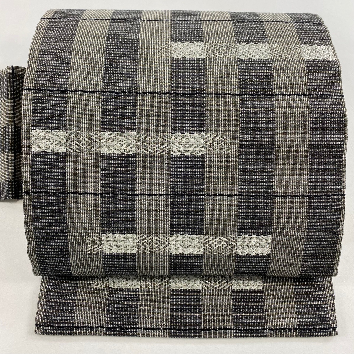 | 名古屋帯 美品 秀品 菱 縞 金糸 灰色 正絹 【中古】 |