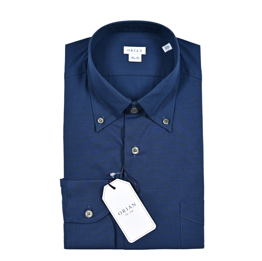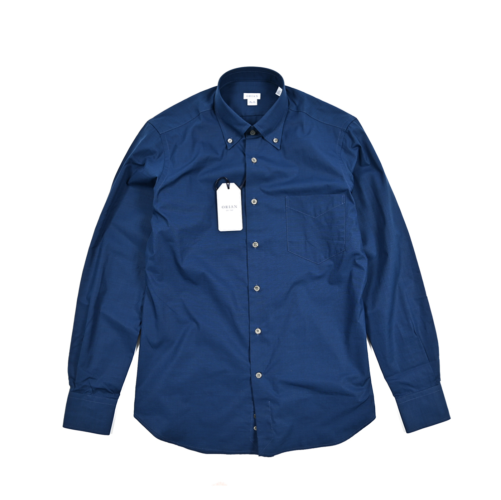 オリアン ORIAN SLIM FIT ドレスシャツ ボタンダウン ワイドカラー 長袖 オールシーズン メンズ コットン 100% ネイビーブルー | |