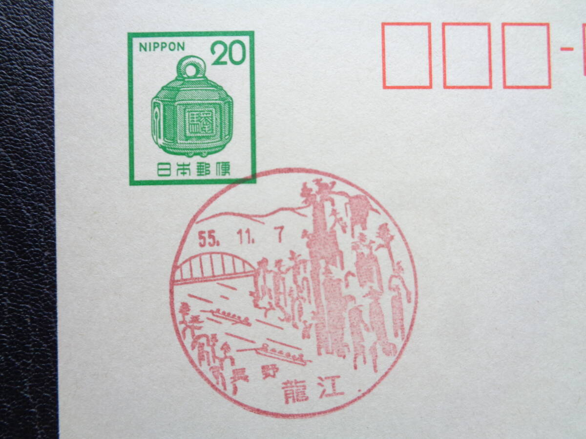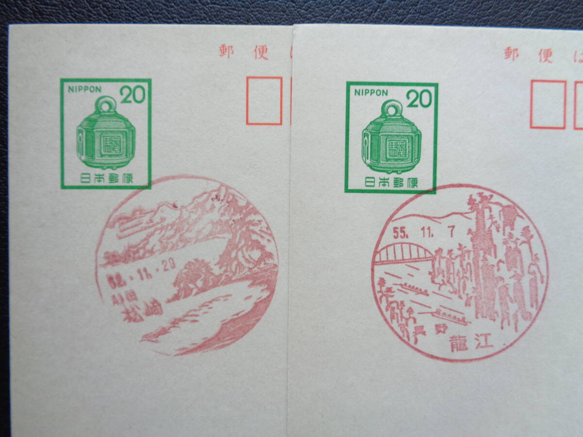 駅鈴はがき    初日印/風景印    長野・龍江/S55.11.7    静岡・松崎/S52.11.29