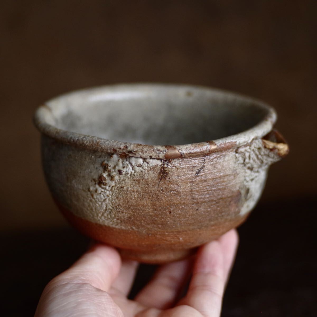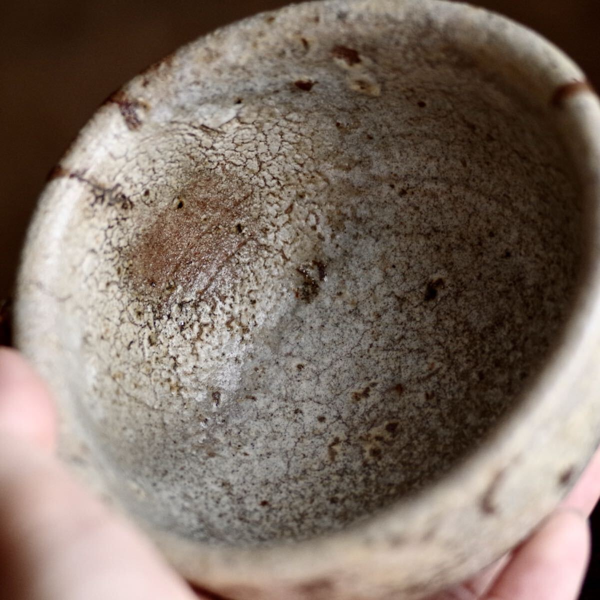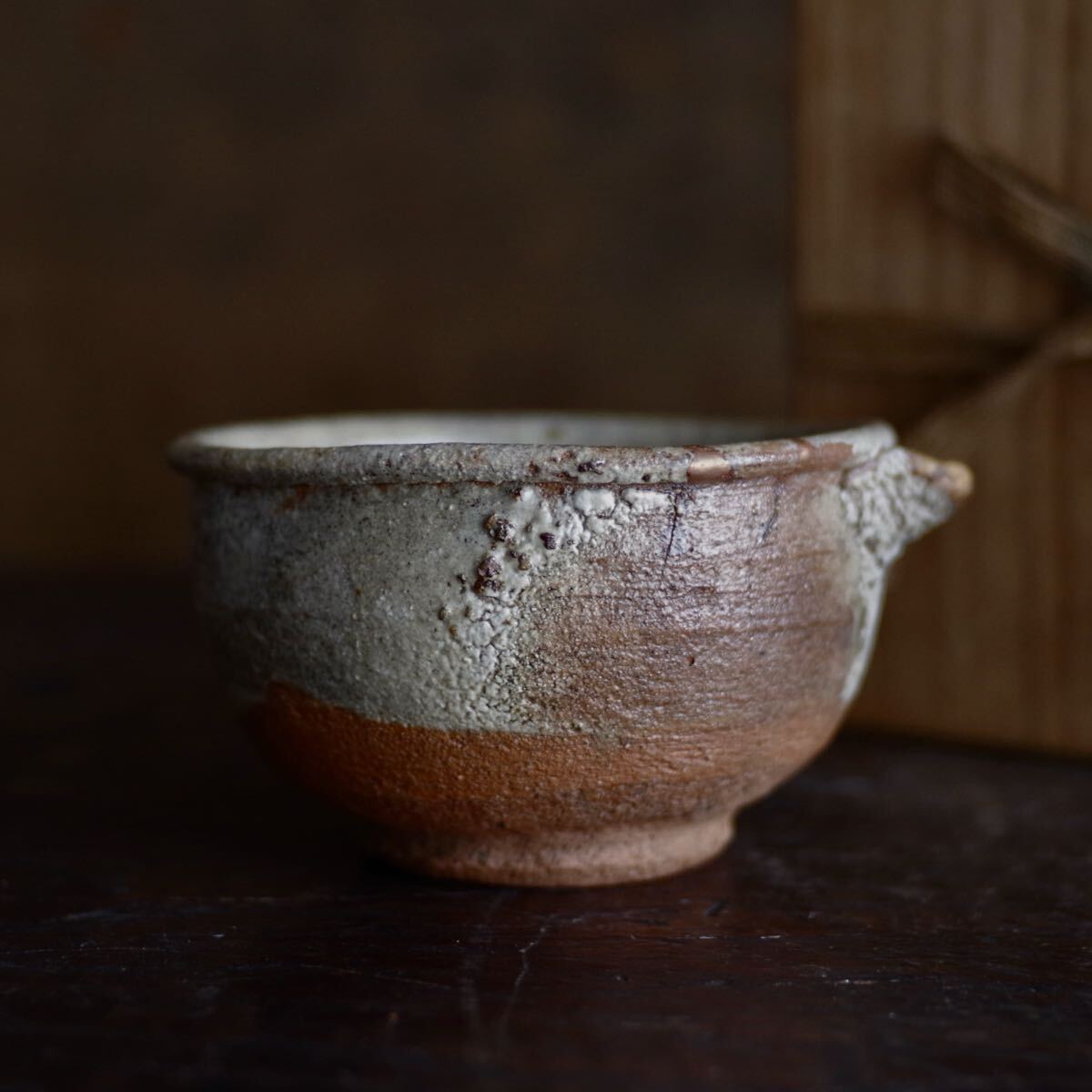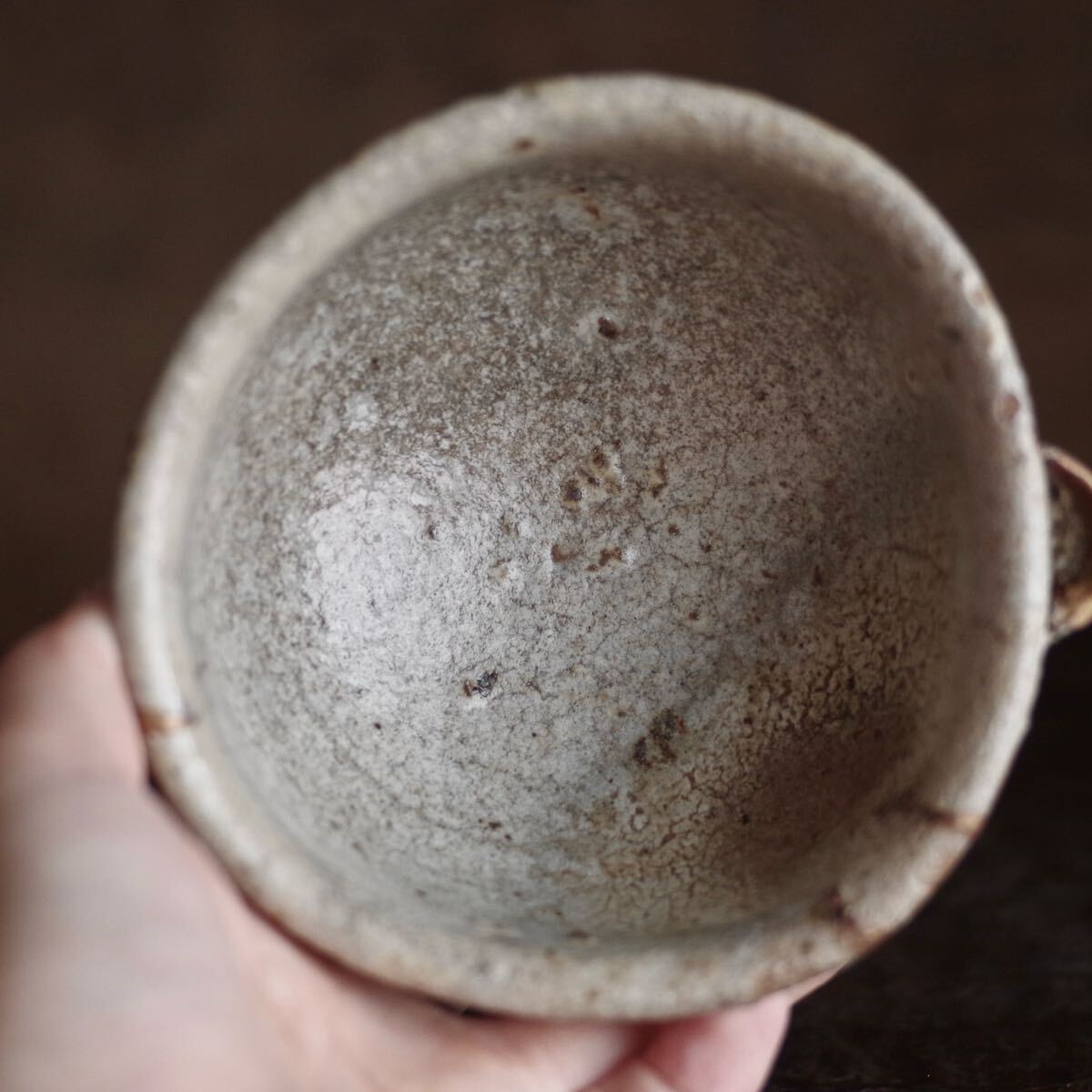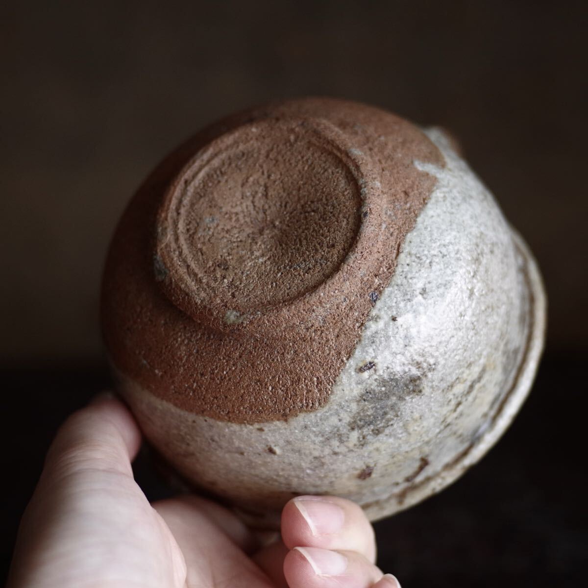 独酌にお使いいただける小ぶりなサイズは、なかなか出てこない希少なもので、嬉しいことにそのまま小服茶碗としてもお使いいただけます。カセもなくしっかりと白く釉薬の残った見込みは大変素晴らしく、口元の直下にはわずかにかせたような雰囲気を確認できますが、他は全て生き生きとした艶をたたえております。