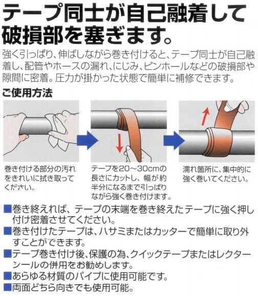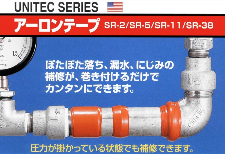 ユニテック 水漏れテープ 配管テープ SR-2 水漏れ修理 配管亀裂補修テープ アーロンテープ 幅25mm×長さ2000mm 強力