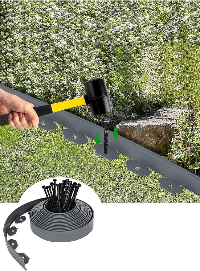 Amazon | ガーデンエッジ フェンス 花壇フェンス 土留め 芝の根止めにも DIY 庭造り 園芸 新型厚肉Lタイプ 簡単な取り付け (高さ5cm×長さ10m, ブラック)