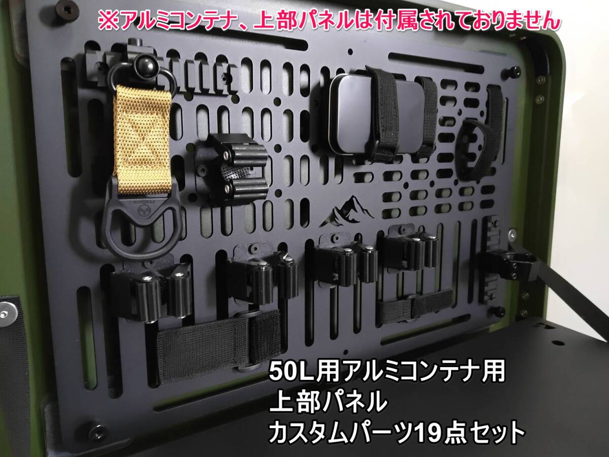 新品送料込み アルミコンテナ用 パーツ (ボルト、ロックナット、ワッシャー付属) □上蓋パネル、粘着式ネジは撮影用になります。 出品には含まれません。 出品に含まれる物 ●20mm レイル(長2本) 2個 ●アルミタクティカルマウント 1個 ●タクティカルフック(ワンプッシュ着脱) 1個 ●ブラックモップハンガー 5個 ●伸縮ベルクロナイロンベルト 6個 ●ミニケース(六角レンチ2種、設置用ネジ類一式+予備ネジ他) (参考) 画像のパネルは 46L~60Lアルミコンテナ用 上蓋パネルになります。 画像の上蓋パネルサイズは 約29cm×46cmになります。 ※上蓋パネル、粘着式ネジは撮影用になります。 出品には含まれません。 付属の工具で お好みの配置で取り付け可能です。 出品内容をよくご確認下さい。 輸入品のため神経質な方はご購入をお控えください。 検索用 ↓ アルミコンテナカスタム アルミコンテナ コンテナ ダルトン 30Lアルミコンテナ VENTLAX DELTA PANDORA 上蓋パネル 蓋裏パネル 1050WORKS BOXキャンパー パンドラ ブラックアルミコンテナ ブラックコンテナ ブラックキャンプ ブラックキャンパー タクティカル ジープ ラングラー ジムニー ランクル アルミコンテナカスタム アルミコンテナ ダルトン VENTLAX DELTA PANDORA 上蓋パネル 1050WORKS BOXキャンパー パンドラ スノーピーク ミリタリー ボックス アウトドア タクティカル ゼインアーツ サバティカル ソロキャンプ ソマビト ミニマライト2 goalzero |