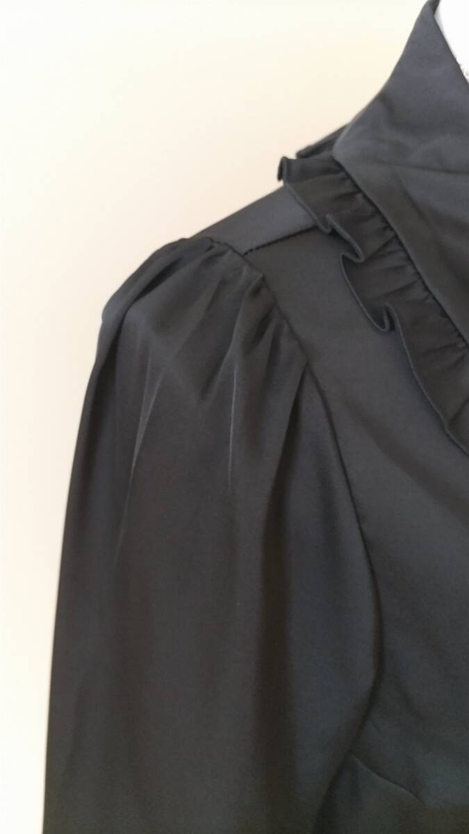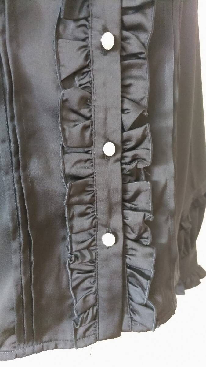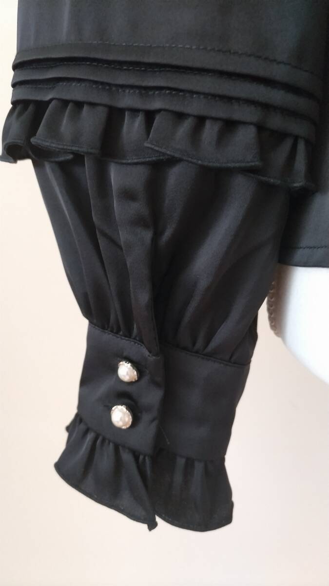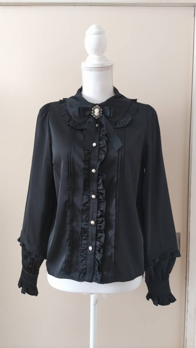 No.5024_黒光沢サテン地カメオリボンブラウス