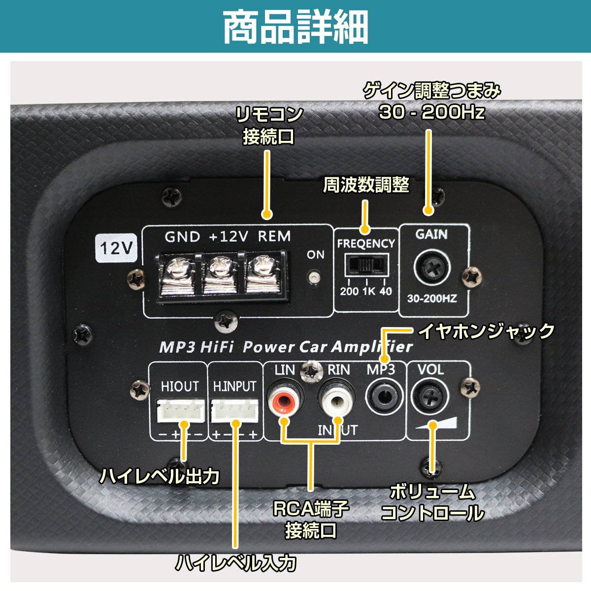 パワードサブウーファー アンプ 内蔵 450W ウーハー 12v カー オーディオ スピーカー 重低音 サウンド 薄型 車 自動車 車載