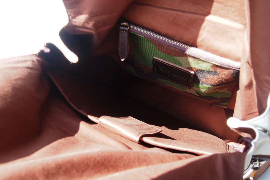 内側のジップポケット部分が迷彩柄になっていて、見えない部分に遊び心を感じます。