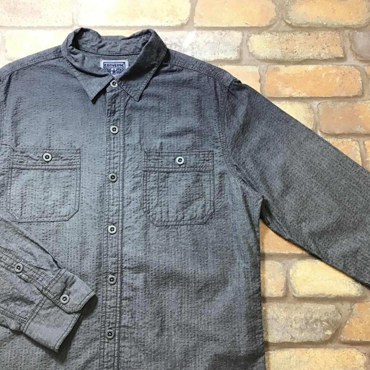 合計落札金額¥8,000円以上で、、、 送料無料!! ※こちらからの[合計支払い金額通知]をご確認の上、お支払い下さい♪ -------------------------------------------------------- 【 CONVERSE コンバース 】 チャコールグラデーション シアサッカー デザイン 長袖 シャツ ● USA輸入・正規品 ● ● 海外サイズ規格 ● ◆ 商品説明 ◆ 汚れ・ダメージなく、コンディション良好です◎ 上の方が濃くなっているグラデーションデザイン★ 凹凸のあるシアサッカー地に、メタルボタン、トリプルステッチが施された お洒落アイテムです♪ -------------------------------------------------------- ◆ サイズ ◆ メンズ M ※実寸をご確認の上、ご検討をお願いいたします。 ◆ 実寸 ◆ 肩幅:46cm 身幅:56cm(両脇下間を計測) 着丈:75cm(背面襟元~裾を計測) 袖丈:68cm 素人採寸の為、多少の誤差はお許しください。 -------------------------------------------------------- ◆ 素材表記 ◆ コットン 100% -------------------------------------------------------- | |||||