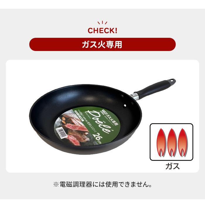 | ・ガス火専用 ※IH電磁調理器等には使用できません。 |