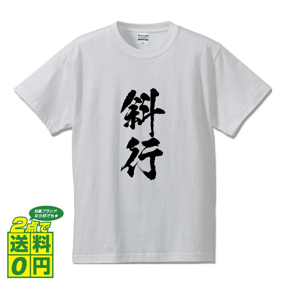 斜行 (しゃこう) 書道家が書く プリント Tシャツ S M L XL XXL 120 130 140 150 G-S G-M G-L 【 競輪 】