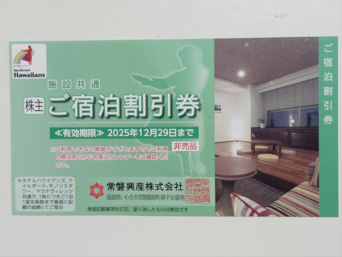 即決★スパリゾート ハワイアンズ(宿泊割引株主優待券)複数有★2025年12月29日迄★出品数量6 z