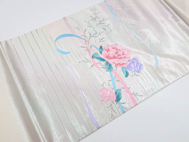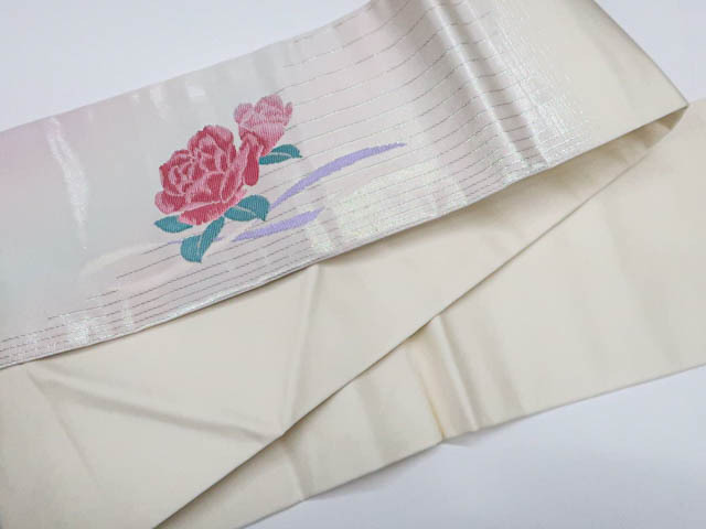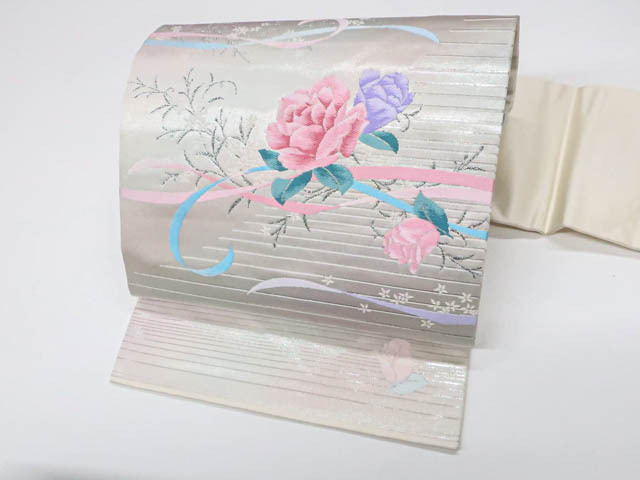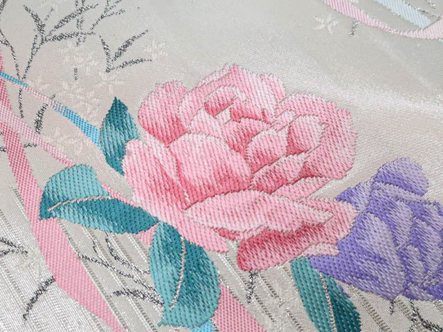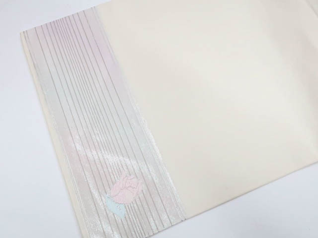リサイクル商品のため、無地場に薄汚れがございますがご着用いただけると存じます。 地色は銀・生成りです。 1枚目の画像が近いお色かと思われます。 素材は正絹です。 日本国内から発送いたしております。 発送後は追跡番号をお知らせいたします。 スタッフによる手作業での検品採寸済み。 |