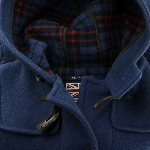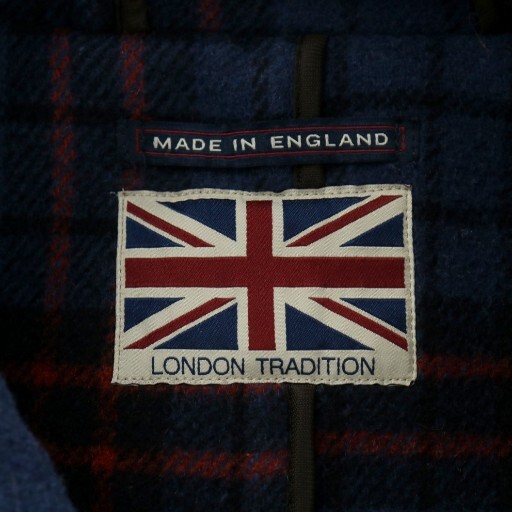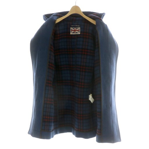 ロンドン トラディション LONDON TRADITION ダッフルコート ロング アウター ウール レザー 皮革 38 青 ブルー 紺 ネイビー