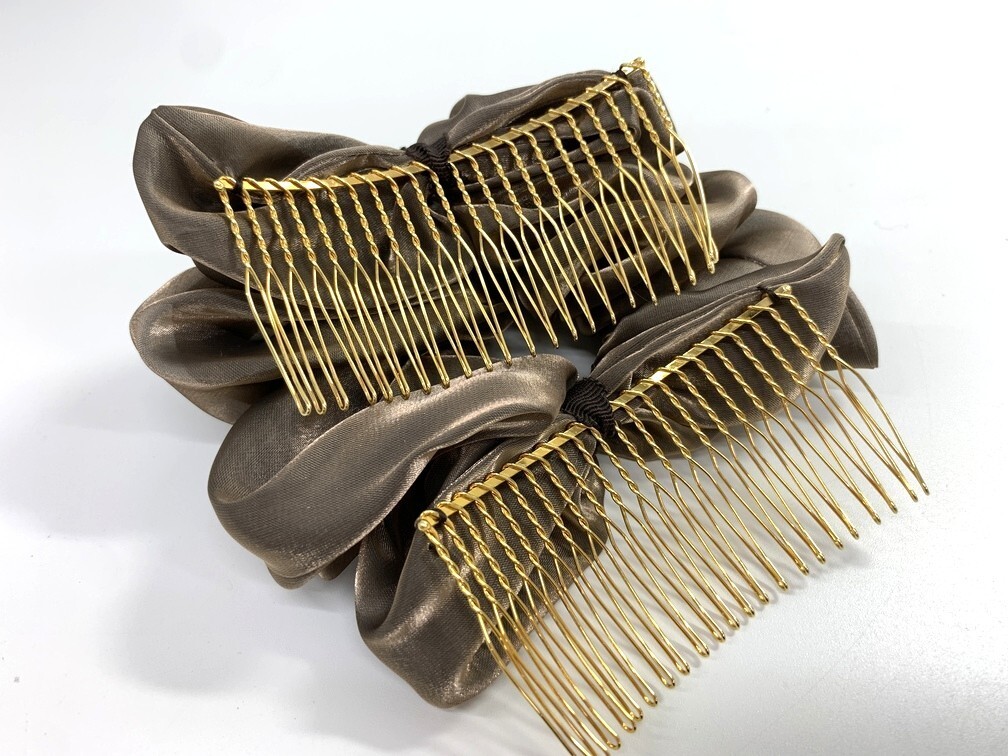 商品名 | 【未使用】ヘアアクセサリー 3点セット シュシュ ツインコーム ヘアコーム リボン まとめ髪 髪飾り ブラック ブラウン系 GIN55099 |
