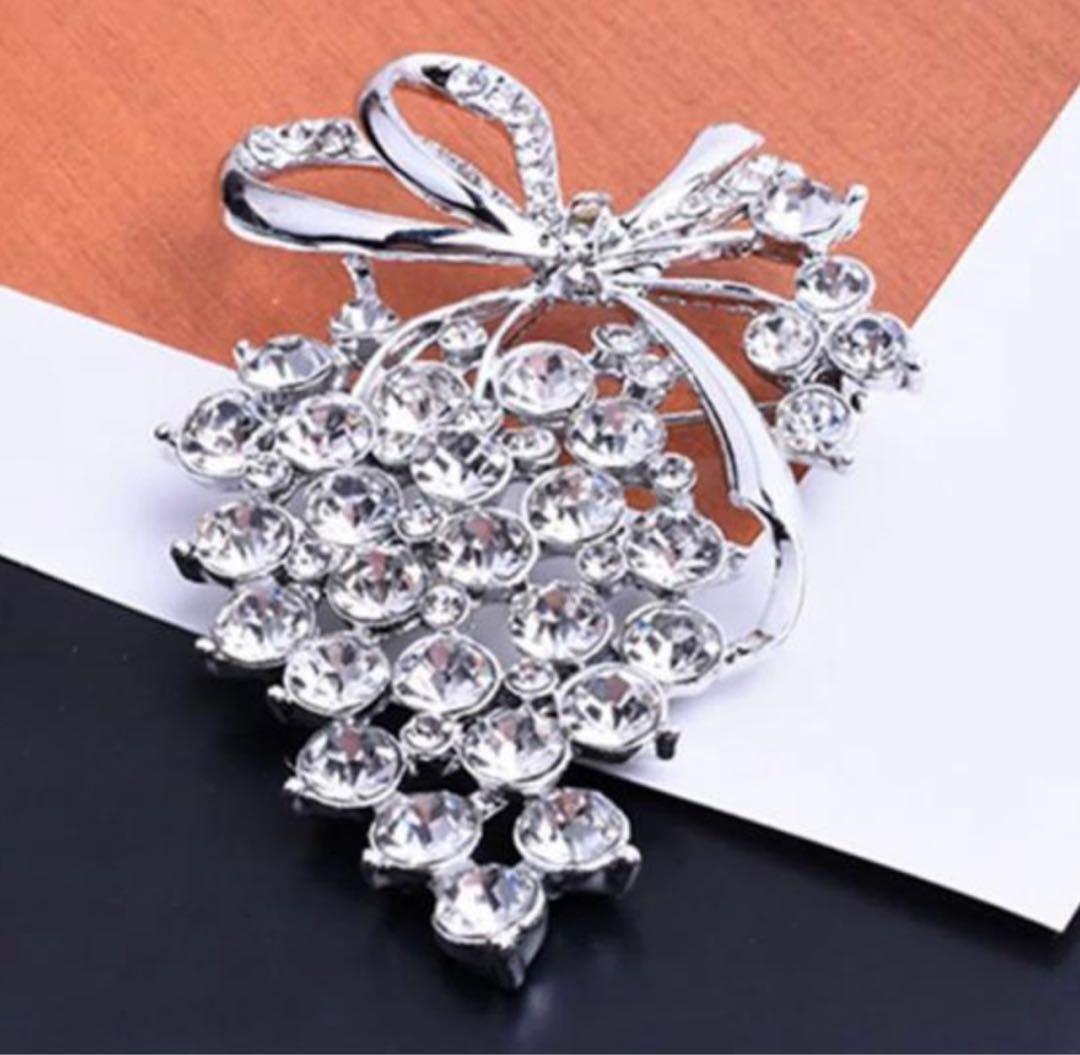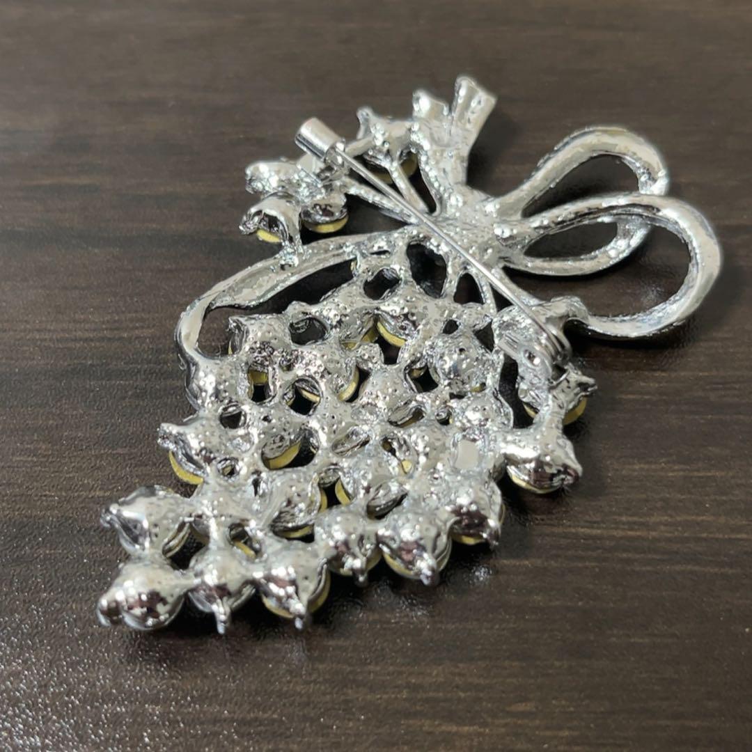 ブドウリボンブローチ クリスタル アンティーク