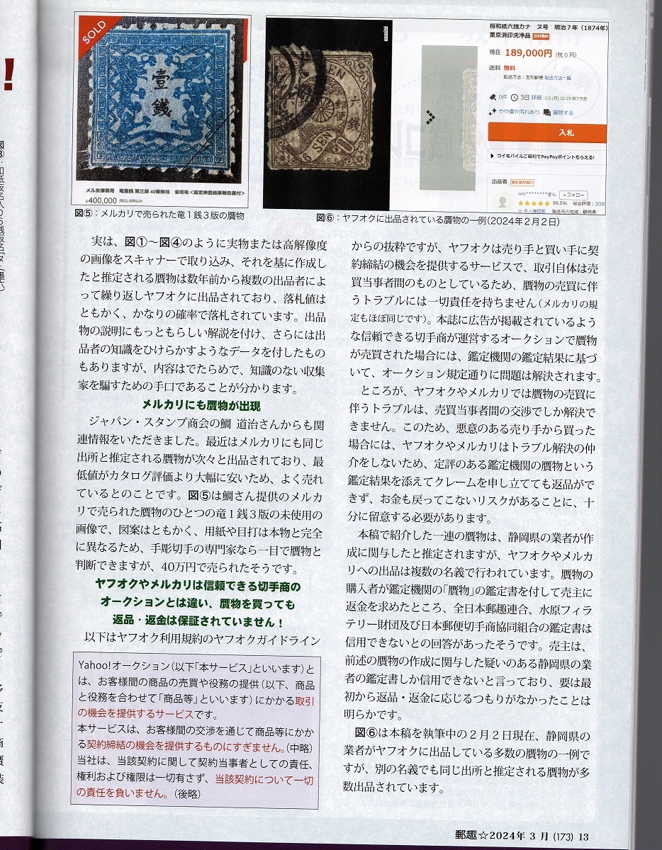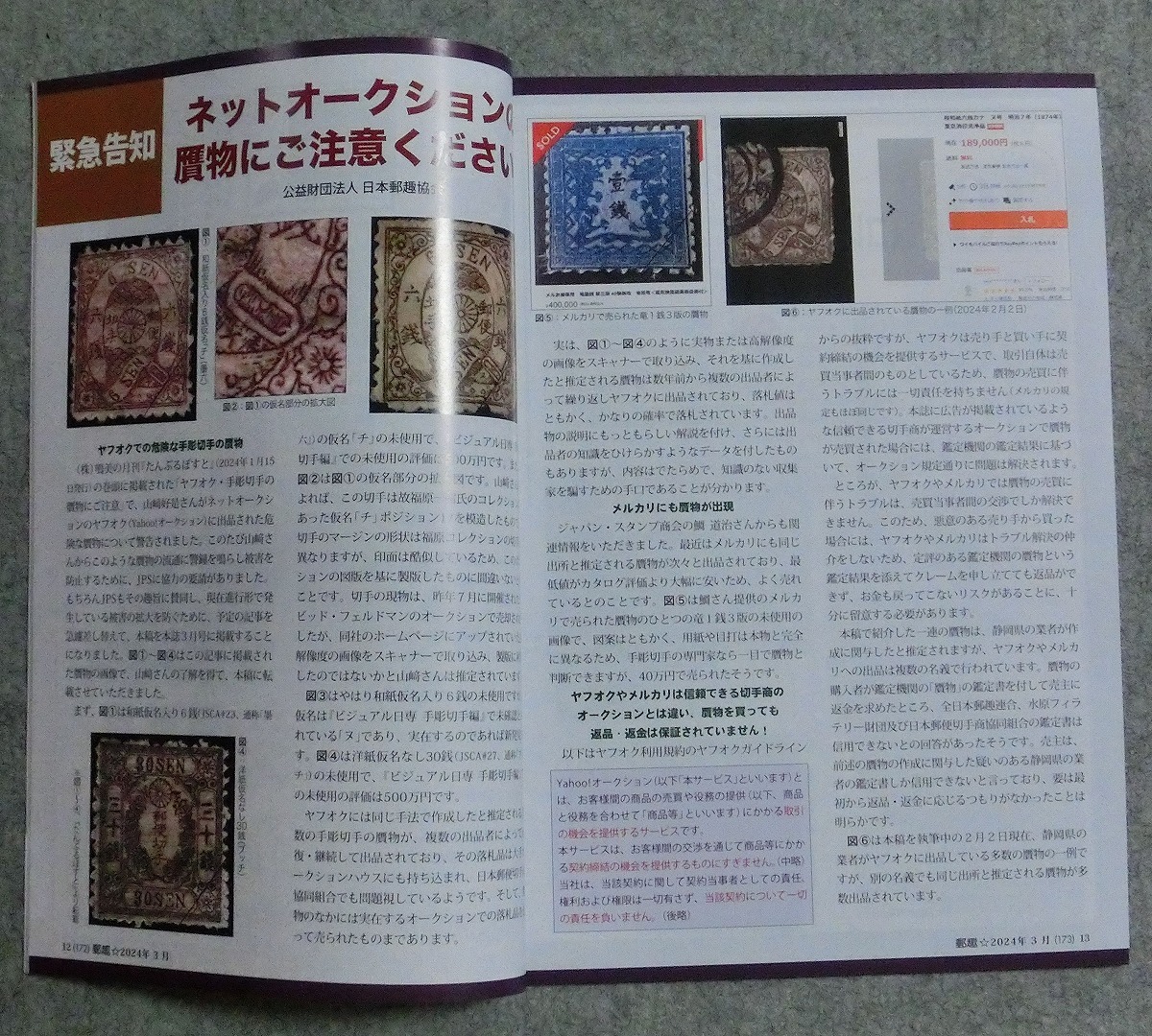 ★★手彫切手 偽物情報★★ 郵趣 2024年3月号 日本郵趣協会 (X01)