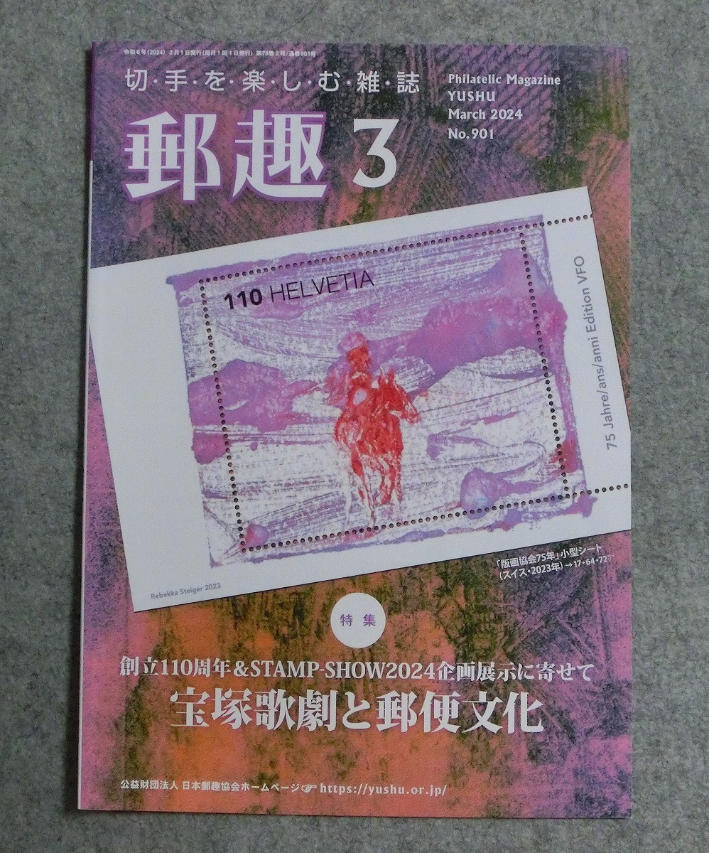 画像のとおりの出版物。公益財団法人日本郵趣協会が発行した「郵趣」2024年3月号です。