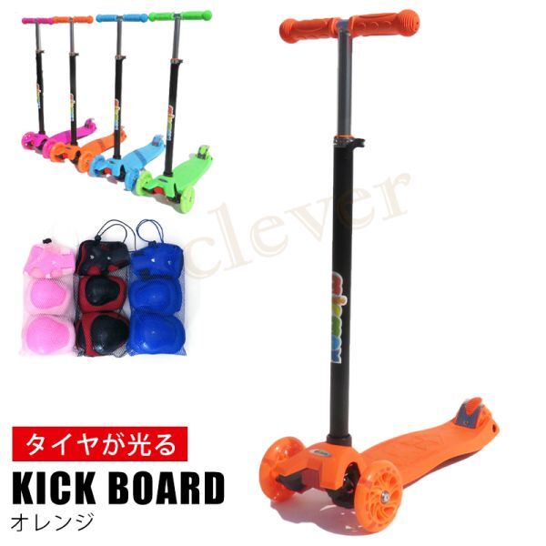 キックボード オレンジ 子供 プロテクター キックスクーター キックバイク 3輪 キックスクーター 光る 挿し込みハンドル 子供用 高さ調節