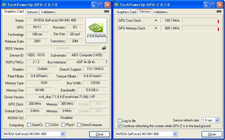 | 商品 | [AGP] ABIT NVIDIA GeForce2 MX/MX400 64MB 128bit 200-365 ファンレス |