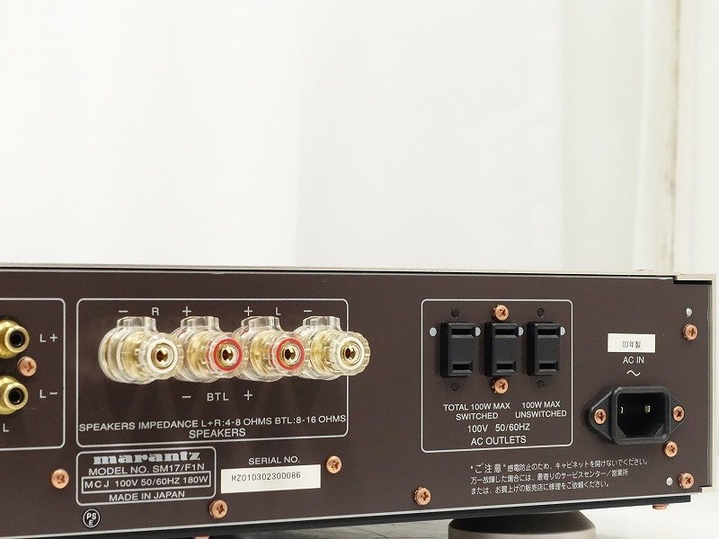 ■メーカー : marantz ■型番 : SM-17SA Ver.2 ■外径寸法 : W458×H110×D407mm ■重量 : 15.5kg 【商品の状態 当店での確認内容】 基本動作確認済み 「商品の状態」に関しましては当方主観の目安となります。外観などは中古品で個人差もありますので詳細は画像にてご判断ください。 画像にて不明な点はご質問下さい。 出品商品は画像のものですべてになります。画像に写っているもの以外は付属いたしません。 ※注意※ ヤフオクのシステム上、送料表記が送料未定となっておりますが、送料に関しては全て有償となりますので下記を参照下さい。 【送料 全国一律 2,080 円 沖縄、離島は別途お見積り】 ※送料がお得になるサービスです(下取りシステムのご案内です) 当ストアでは商品を安全にお届け出来るよう提携運送会社と協議の上、発泡緩衝材や強度段ボールの使用等 運送会社が指定する梱包方法や資材を採用しております。 より安全にお届け出来るよう商品仕様により梱包サイズが大きくなる場合や個口数が増える事がございます。 【当ストアオークションルールを入札前に必ずご確認ください。】 【落札後の取引手順】 ・落札後は取引ナビにて、必要事項をご入力後、送信ください。 取引終了後48時間(土、日は除く)以内に入力をお願い致します。 ※ご連絡が頂けない場合は落札者様都合でのキャンセルとさせていただきます。 ・落札代金(商品代金+消費税+送料)の入金をお願い致します。 ※大型商品の場合は送料確定後の決済となる為取引ナビを入力頂き、当ストアより送料のご案内が来るまでお待ちください。(土曜、日曜、祝日の場合は翌営業日より順次ご案内いたします) ・お支払い方法は※クレジットカード/※PayPay残高/※PayPayクレジット/PayPay銀行/ゆうちょ銀行のみです。 ※商品代金引換(代引き)のお取り扱いはしておりません。 ※領収証の発行が必要な方はご連絡ください。 ※銀行振込の際の振込手数料はご負担願います。 ・入金確認後に出荷手配を致します。 (原則入金確認後3営業日以内に発送いたしますが、大型や重量のある製品はお時間をいただく場合もございます。) ・発送は当店指定の運送会社の元払いのみでの発送となります。 ※他の運送会社、送料代引き等は致しかねます。 ※落札者様ご自身での運送会社の手配いただく事も可能ですが荷物事故の責任の所在の問題上、梱包は致しかねます。 ※店頭にお越し頂き手渡しも可能(福岡市早良区)です。ご希望の方はご落札後にご連絡下さい。 ・大型/重量物商品の送料につきましては商品の特性上、荷降ろし状況等により送料が大きく前後し運送業者に別途見積りが必要な為、早めのお問い合わせにてお見積り上、入札をお願い致します。 【初期不良の保証について】 ・商品到着後の初期動作不良、また配送中の事故による破損、不具合が有る場合は、商品発送後10日以内に当ストアまでご連絡ください。当ストアでは修理での対応を優先させて頂きますが、修理不可の場合は全額返金させて頂きます。 (商品代金+消費税+送料のお支払い頂いた金額となります) 【初期不良の保証の対象外について】 次の場合は保証の対象外となりますのご留意ください ・ジャンク商品、現状商品、難あり商品での出品商品。 ※難あり商品に関しましては動作確認時に一部動作不良が確認された商品になり、記載している動作確認以外にも、動作不良がある可能性もございます。こちらに関しましても保証対象外となりますことをご理解ください。 ・年代物のオーディオなどで、当店にてわからない範囲で部品が交換されている場合 ・楽器類の特殊機材(マイクロスコープ等)での確認までは行っておりません。気になる方は事前にご質問いただくか、入札をお控えください。 ※初期不良に関しましては【商品の状態】に記載のもの、またそれによって起因する動作不良は対象外です。 ※商品発送後10日を過ぎてのご連絡は対応が出来ませんので、商品が到着しましたらお早めに確認をお願い致します。 【メーカー保証の加入・継承】 ・未使用品、展示品やメーカー保証期間が残っている商品に関しまして、メーカー保証の加入、継承が必要な方は、落札後取引ナビ内にて当ストアにお知らせください。商品発送までにご連絡いただけない場合、メーカー保証の手続きを承れない場合があります。 【評価について】 ・評価不要の場合、必ず取引ナビの「要望欄」にてお知らせください。それ以外でご連絡をいただいた場合、対応できない可能性がございます。一度行った評価はシステム上取り消しが行えませんのでご了承ください。 【入札削除・キャンセルについて】 ・入札後はトラブル防止の為いかなる事情がおきましても入札を削除等は致しておりません。 ご検討の上入札をお願い致します。間違った際の入札額の金額訂正はご自身で行ってください。 入札額の変更方法 【入札に関しての注意事項】 ・最近イタズラ入札が多く見られるため、新規IDや悪い評価が一定数あ