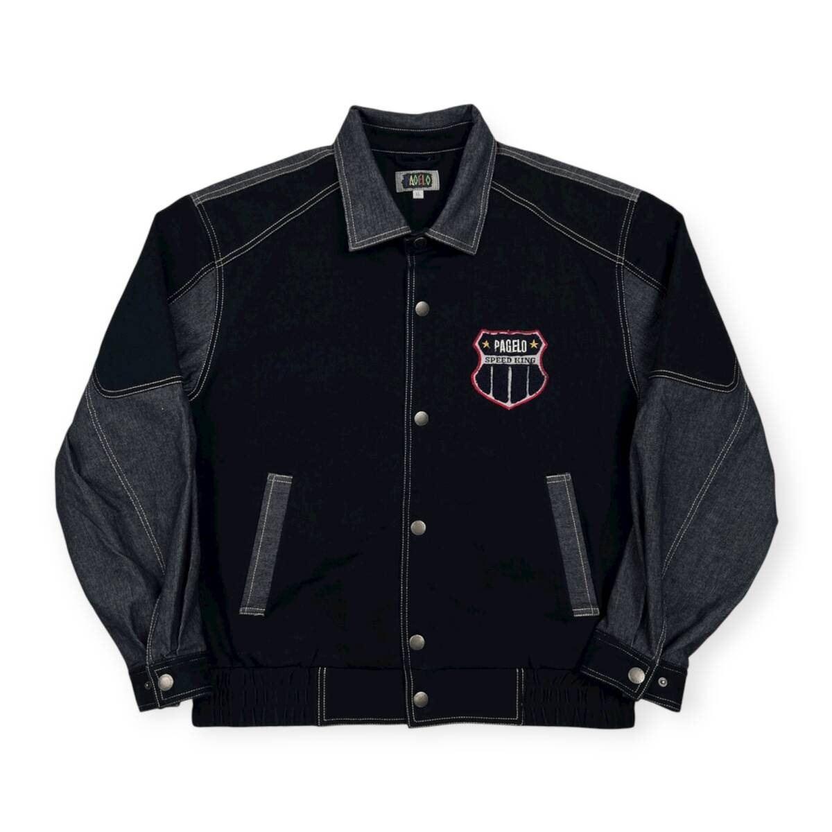 商品名 | PAGERO パジェロ ワッペン付き デニム切替 スタジャン ジャケット ブルゾン サイズ LL /メンズ/インディゴネイビー系/メンズ/アンジェロ |