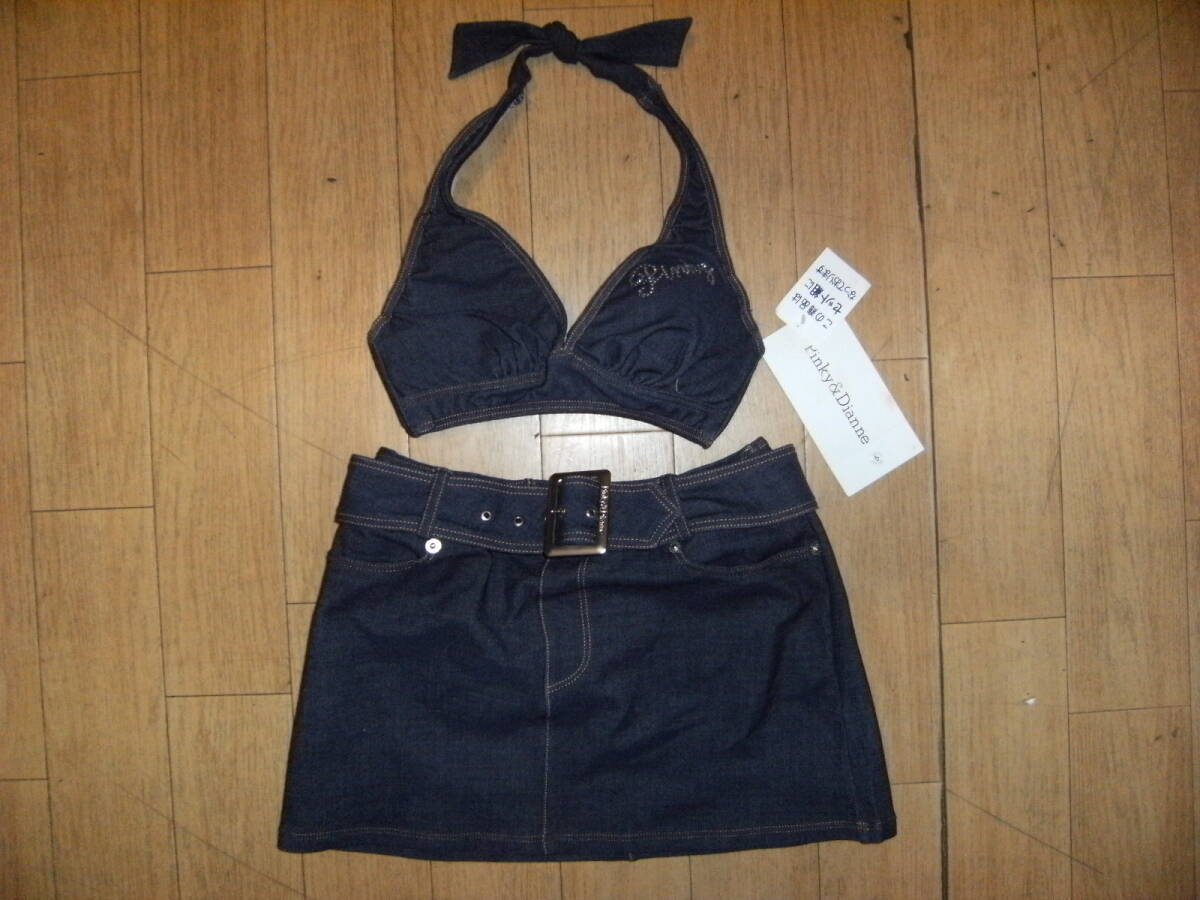 廃番★レトロ★90年代★Pinky & Dianne ピンキー&ダイアン 水着 上下セット デニム風 ビキニ スカート★コギャル ディスコ キャンギャル