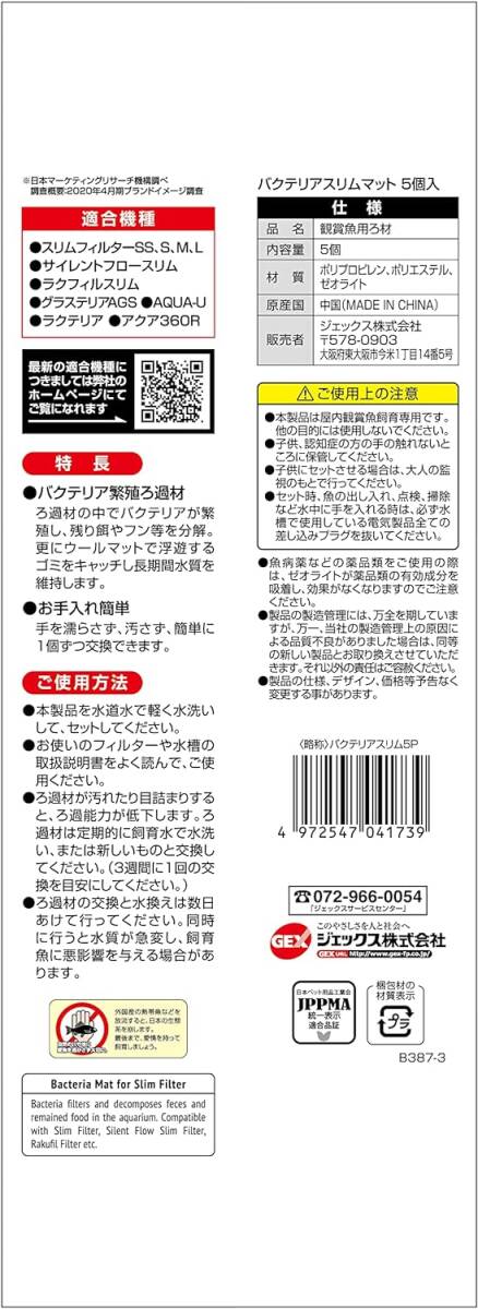 ●商品名:  GEX  スリムフィルター 「活性炭 スリムマット 5個入+バクテリアスリムマット 5個入」  × 2セット