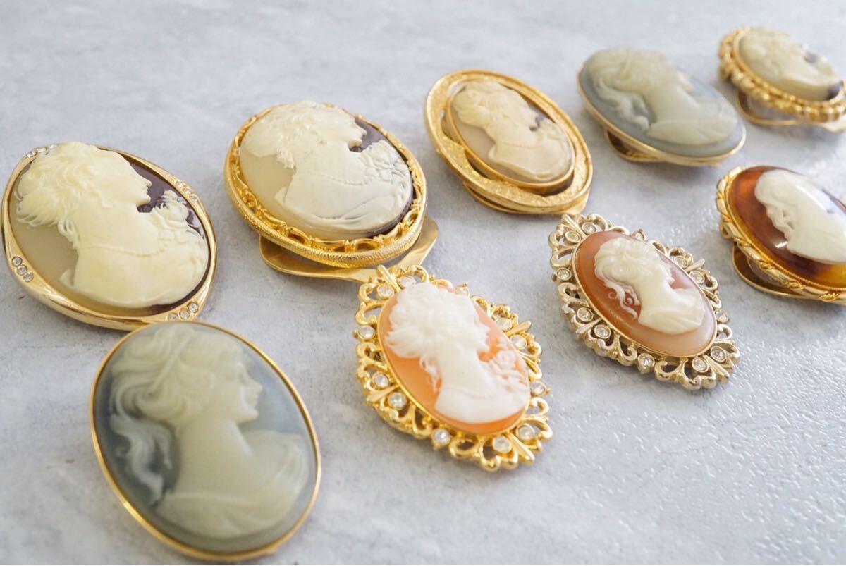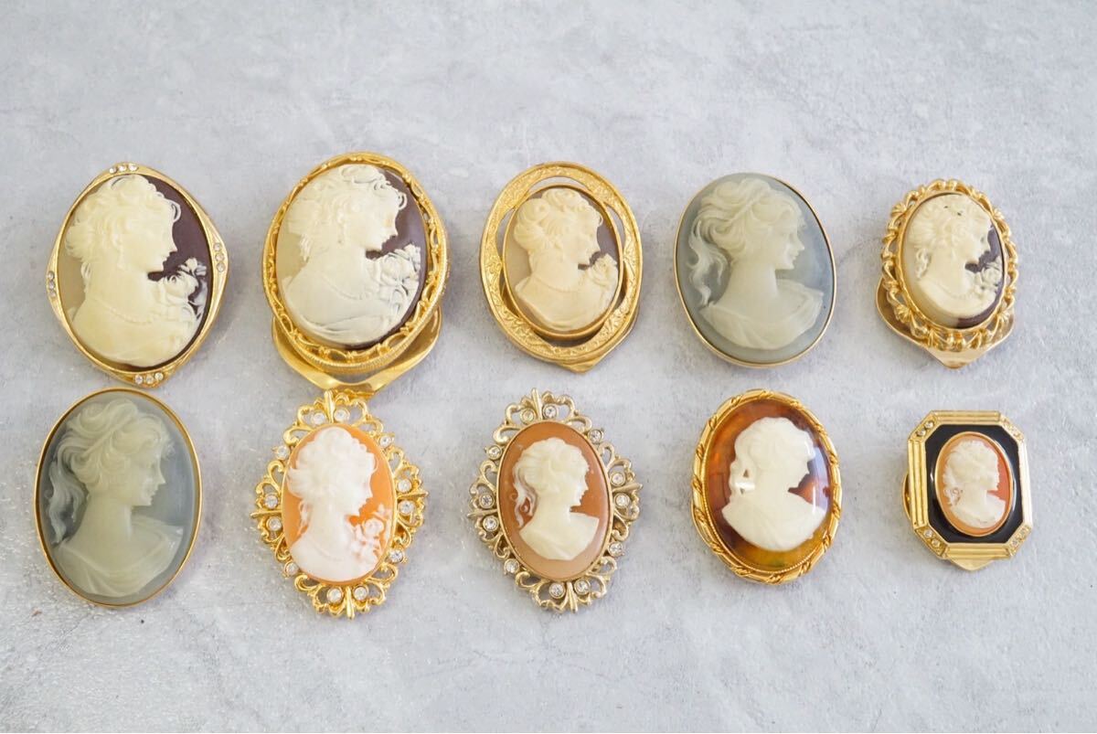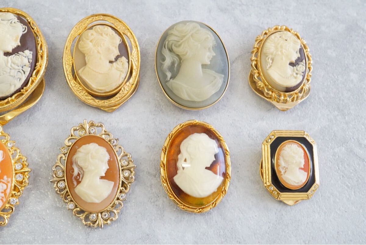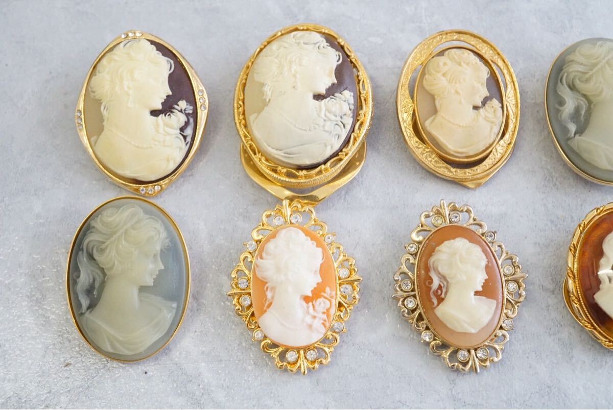 B237 カメオ系 貴婦人 人像 ブローチ 10点セット アクセサリー ヴィンテージ アンティーク 大量 まとめて おまとめ まとめ売り