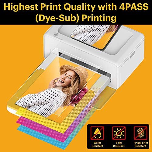 素晴らしい画質:コダックドックプラスは、4PASS(フォーパス)テクノロジーを採用しており、すぐに完璧な写真をプリントできます。各写真は多層リボンで印刷され、ラミネート加工が施されます。そのため指紋が付かず、高い耐水性があるので、長期間品質を保つことができます。